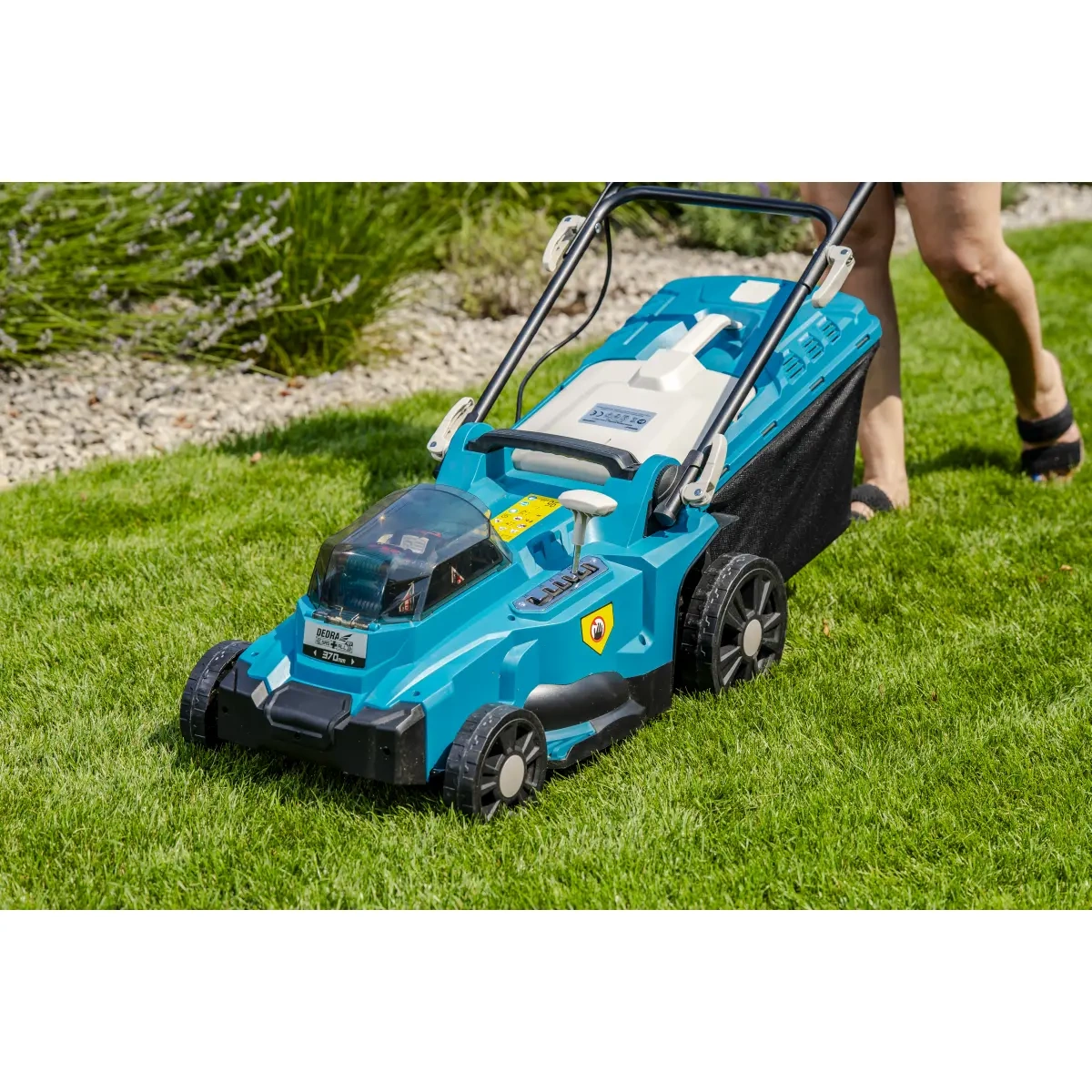 Tento stroj je určen k sekání a péči o trávník. Je poháněna robustním bezkartáčovým motorem a pracuje na dvě 18V baterie. Tato konstrukce umožňuje velmi tichý provoz. Se záběrem 370 mm je ideální pro malé až středně velké zahrady. Dík y kompaktní a lehké konstrukci a velkým kolům se s ním snadno manévruje. Výška sekačky je centrálně nastavitelná v 6 polohách (25 - 75 mm). Sekačka je vybavena funkcí mulčování/drcení, která snižuje objem trávy. Skládací rukojeť a síťový koš usnadňují skladování a přepravu.