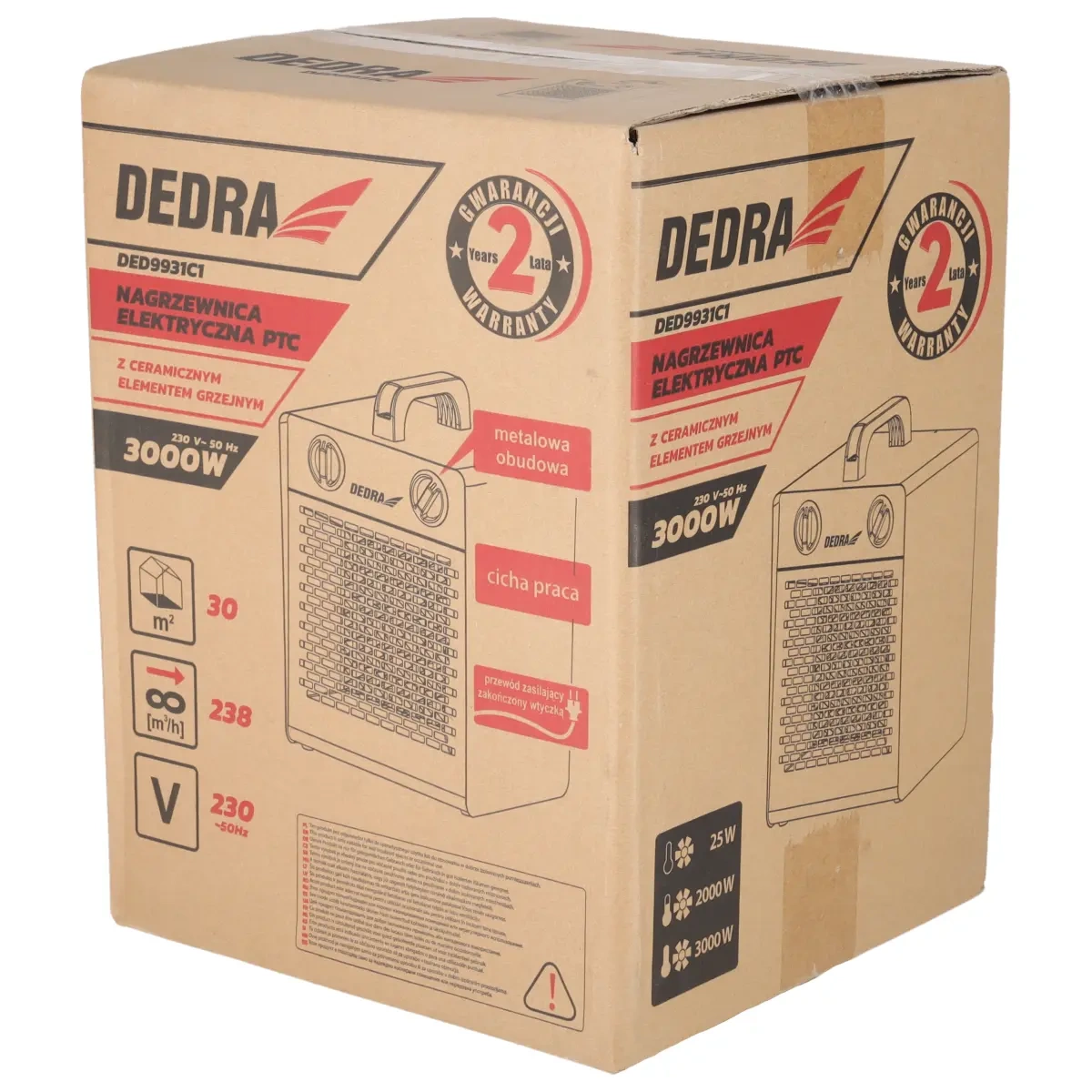 PTC elektrické topné těleso 3,0 kW, čtvercové, černé DEDRA DED9931C1 keramické topné těleso