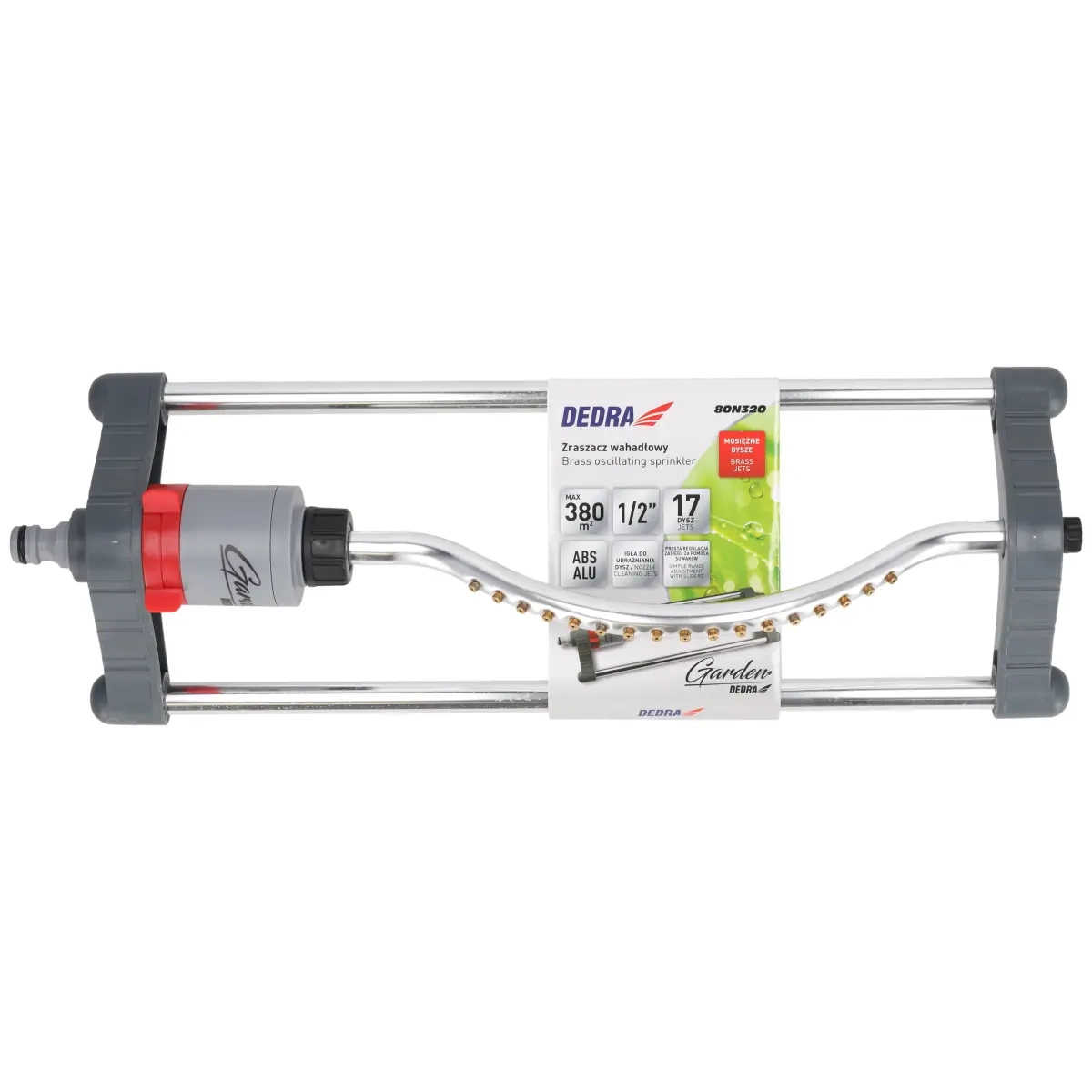 Tělo postřikovače je vyrobeno z odolného plastu ABS, kování a postřikovací tyč jsou vyrobeny z hliníku. Maximální plocha postřiku je 380 m2. Připojení vody pomocí1/2"rychlospojky.