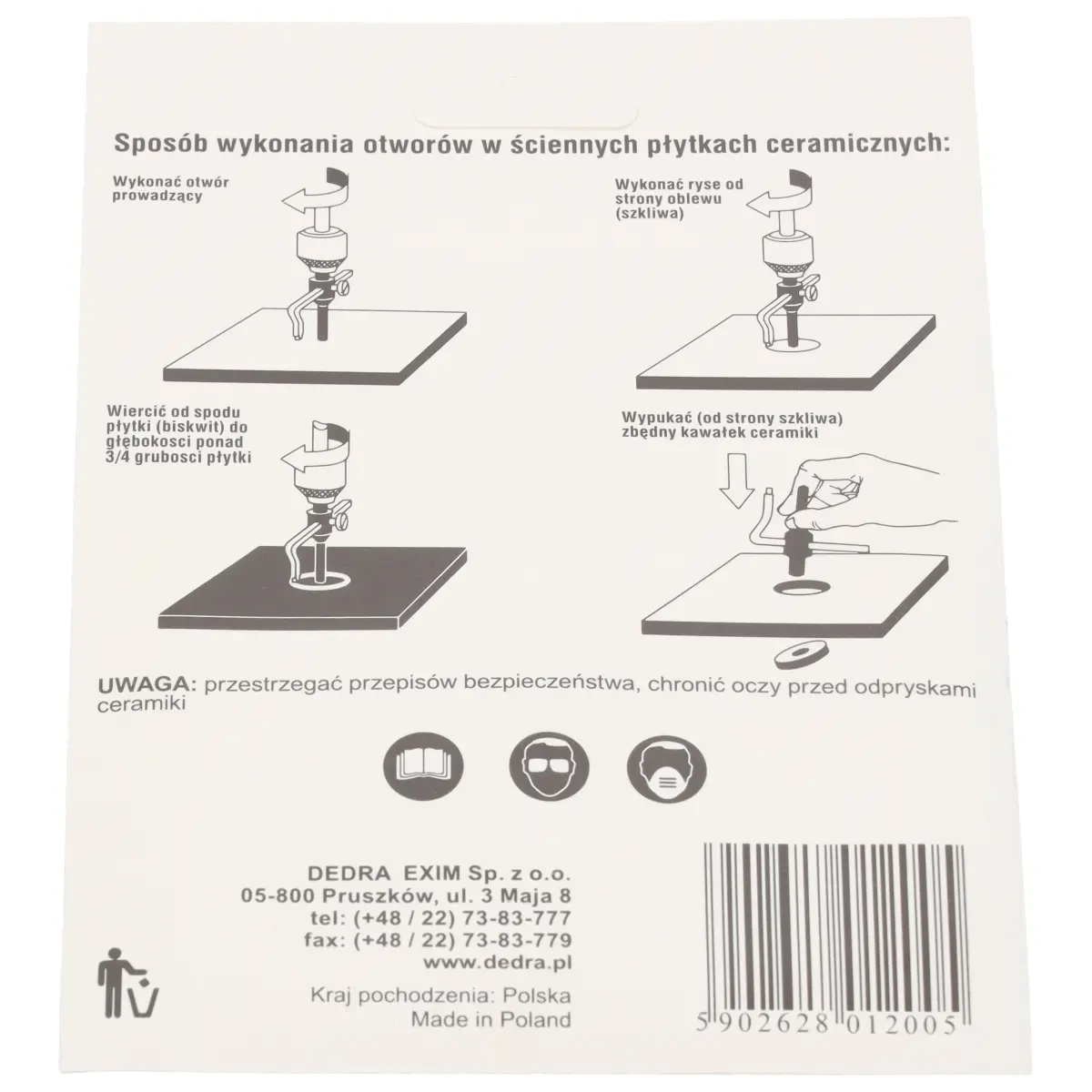 Fréza DED012 je univerzální nástroj, který umožňuje vytvářet otvory do materiálů, jako je terakota, dlaždice, cihly a plast.