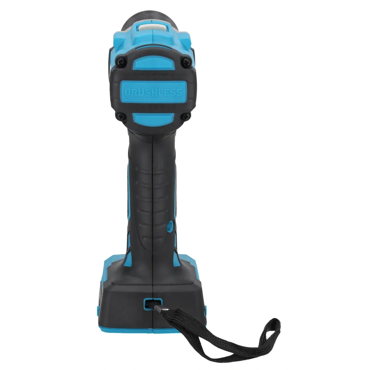 Jednoplášťové samosvorné sklíčidlo (13 mm) zajišťuje snadnou montáž všech typů vrtáků, např. vrtáků, bitů. Použitý bezkartáčový motor má ještě vyšší výkon a komfort a přídavná rukojeť usnadňuje vedení vrtačky i přes odolné materiály.