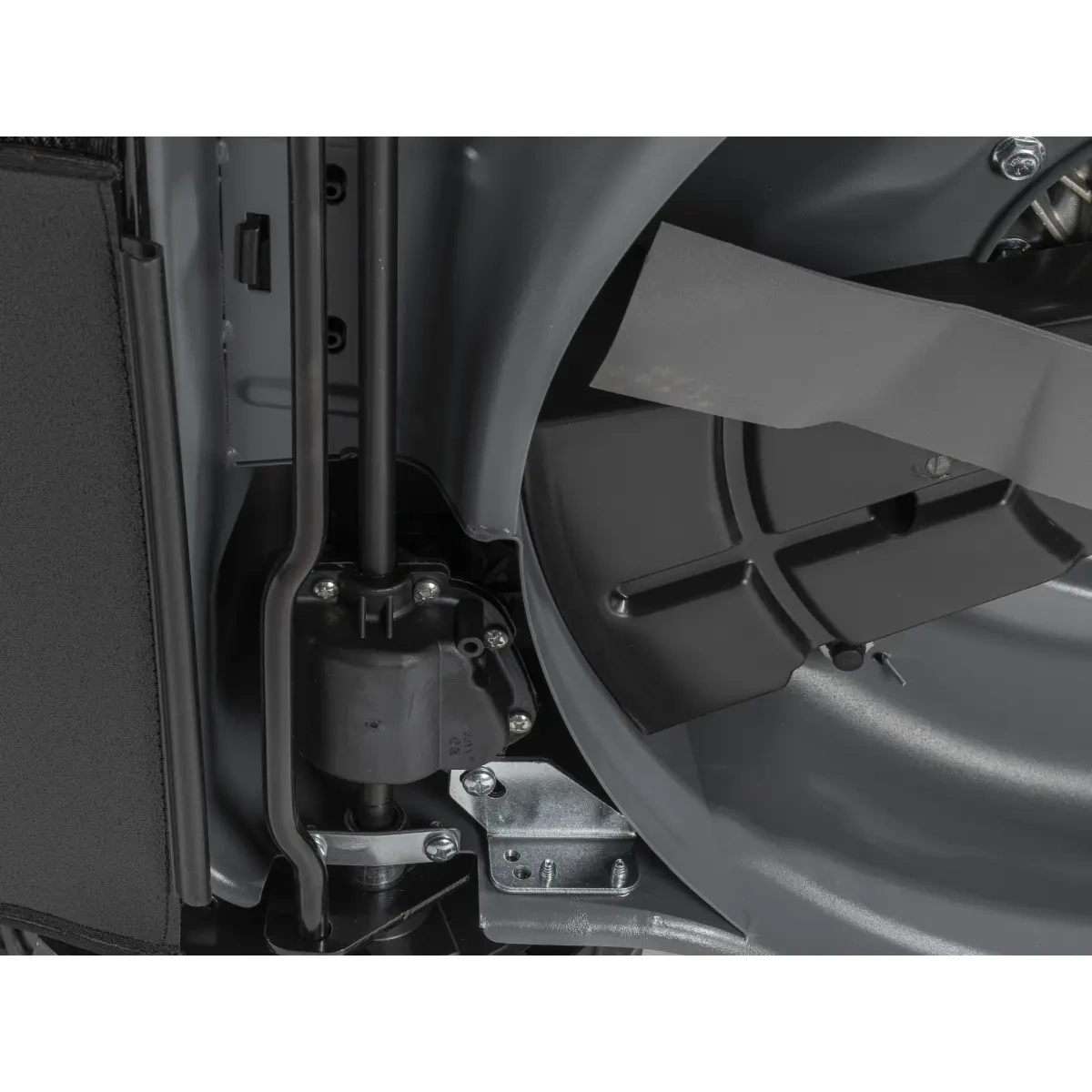Sekačka je navíc vybavena funkcí mytí krytu – na kryt sekačky lze připojit zahradní hadici s rychlospojkou. Při zapnutém motoru otočte kohoutkem a voda proudící hadicí směřuje do vnitřní části krytu, zatímco nůž svou rotační silou vodu rozprostře a „umyje“ sekačku zespodu – tam, kde je nejvíce zaschlé a slepené trávy.