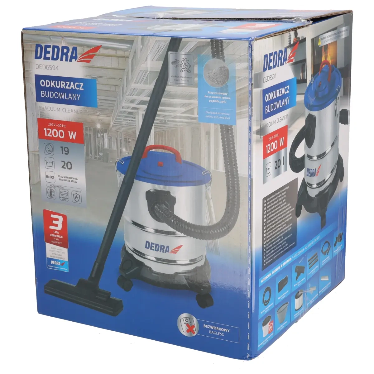Stavební vysavač na suť, popel, sádru 1200W 20l, DEDRA DED6594