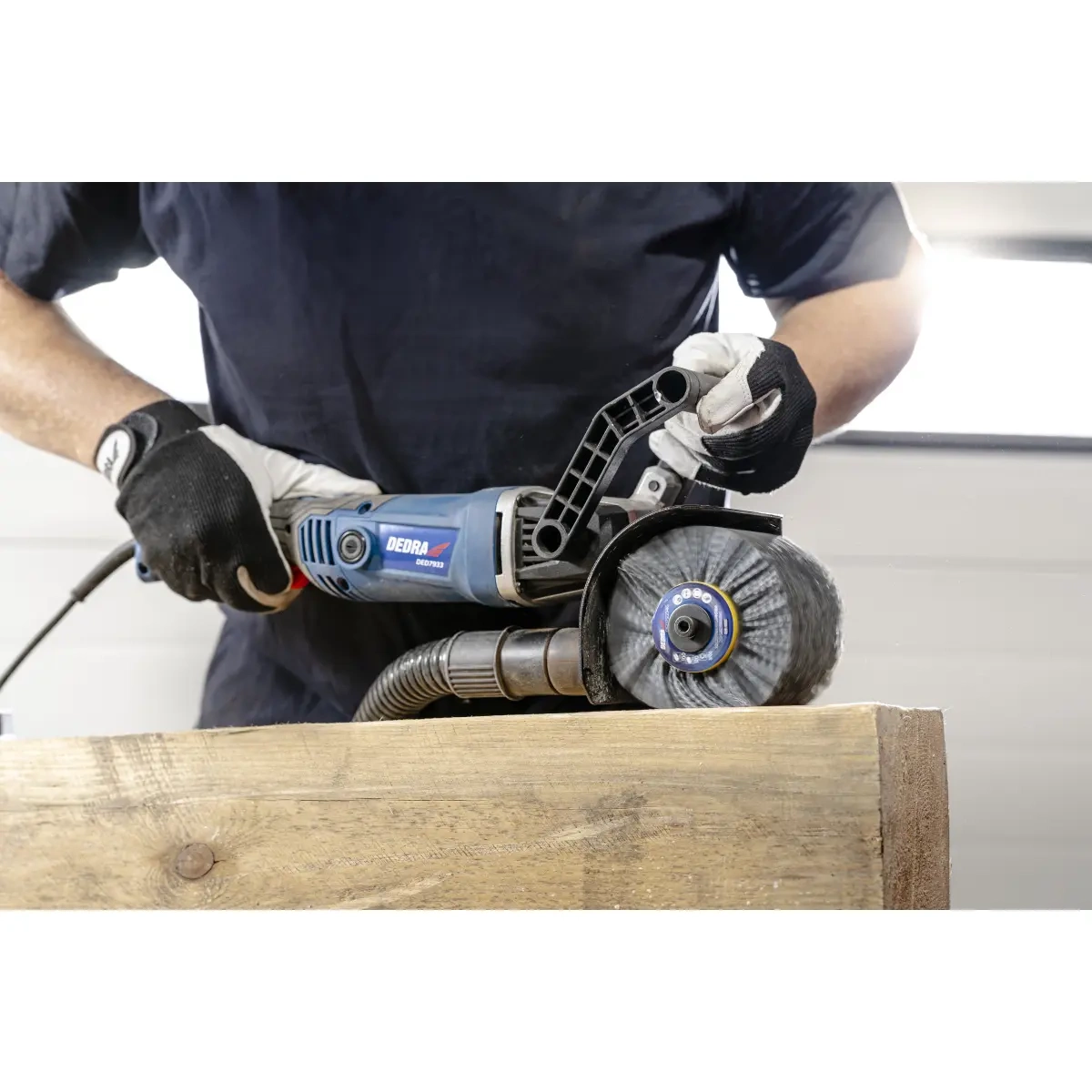 Štětiny kartáče jsou vyrobeny z odolného a zároveň pružného nylonu, který se vyznačuje vysokou odolností proti opotřebení. Důležité je, že je měkčí než jeho kovové protějšky, což výrazně snižuje riziko poškození opracovávaných povrchů, zejména měkčích, jako je dřevo a plast.