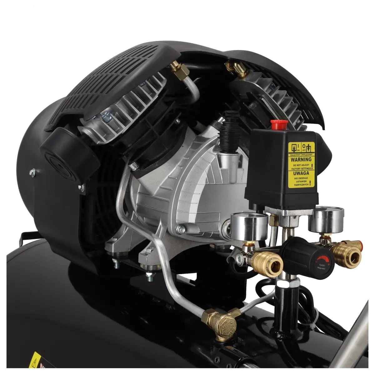 The oil compressor A077070 is designed for compression of atmospheric air and can be used for blowing,cleaning, washing,w h e e l pumping, painting, etc. with the appropriate equipment. The compressor has a 2,300 W motor and a 100 litre tank. Large transport wheels allow easy and fast transport of the compressor. The device is equipped with two gauges and twoconnections, which significantly increases the compressor's efficiency. Features of the PANSAM Compre soraA077070:- V two-cylinder engine