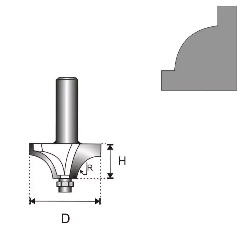 This ornamental router bit is crafted from high-speed steel (HSS) and features a double-edged blade made of carbide. Designed for use with solid wood, plywood, chipboard, and MDF, it includes a guide bearing and is coated with heat-resistant hammer paint. The shank diameter is 6 mm.