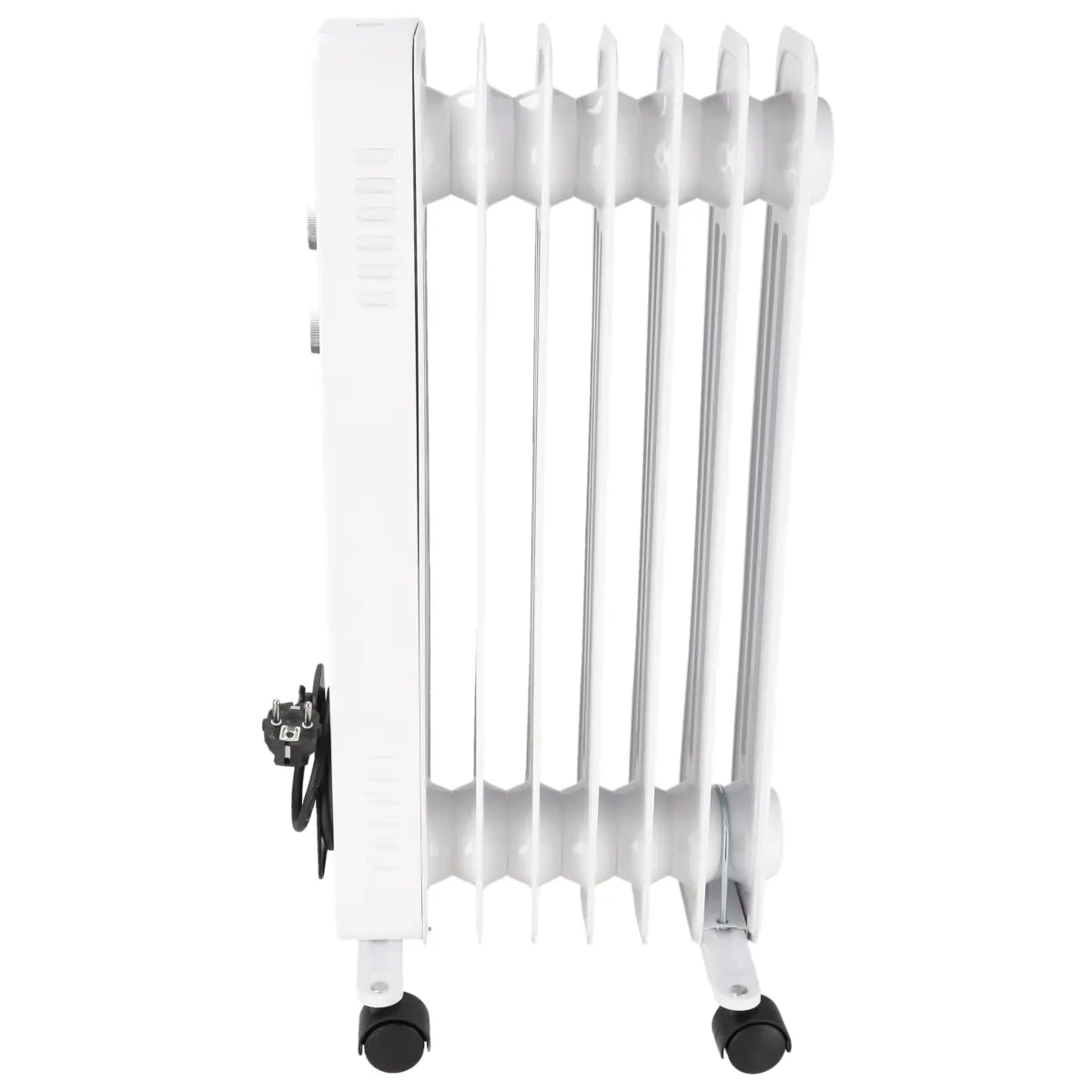 The DA-J1501 oil radiator heater is designed for heating residential, utility, and office spaces, as well as garages and basements. The thermostat allows for precise temperature adjustment, and the oil inside the radiator retains heat for an extended period, ensuring stable warmth even after the heater is turned off. With its wheels and compact size, the DA-J1501 oil radiator is mobile and easy to operate, while its modern design complements any room decor.