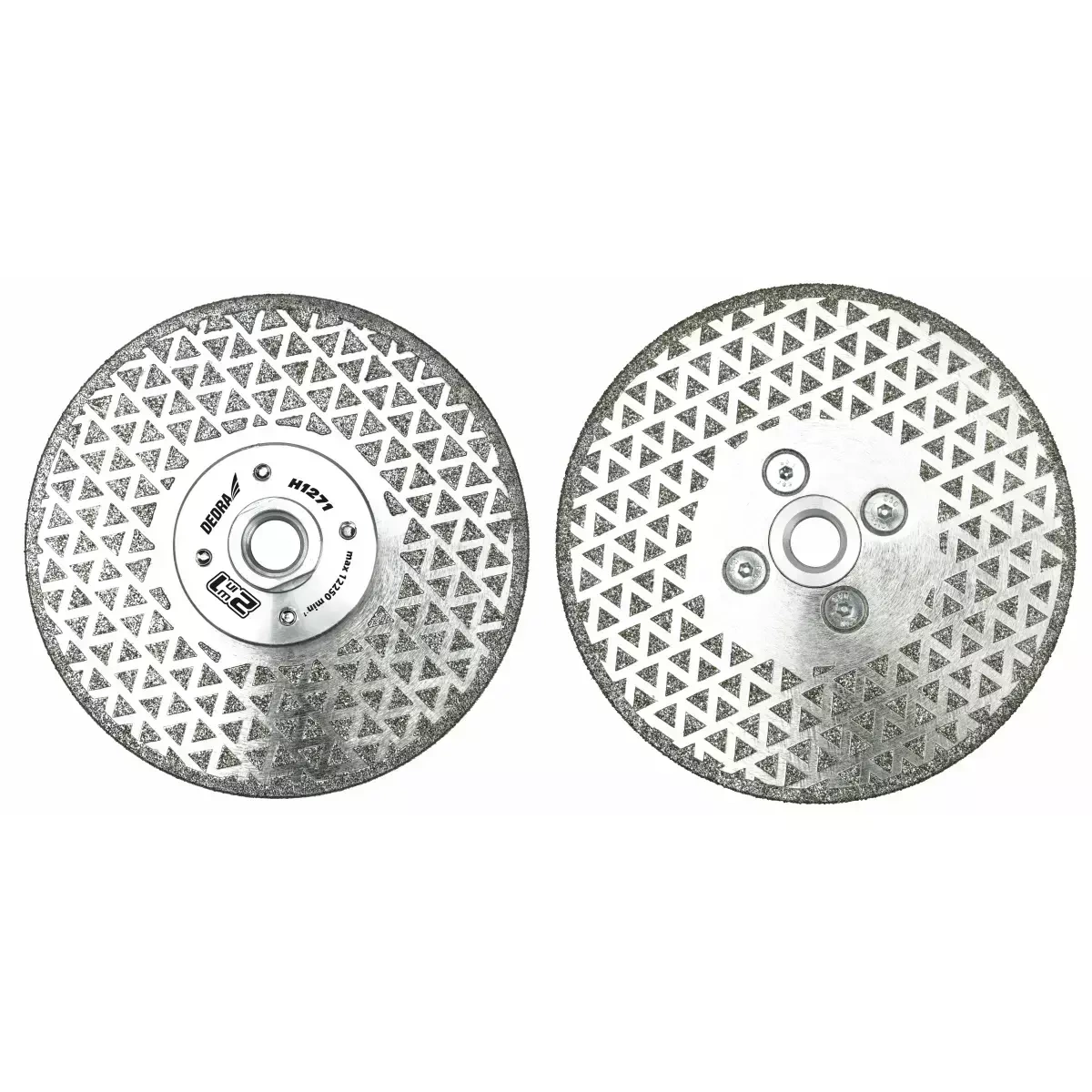 The DEDRA H1271 cutting and grinding two-in-one tool. The ideal gift idea for interior finishers, tilers and those working with natural stone. You can use it successfully with natural stone, plastic, synthetic materials, bricks and all kinds of ceramic tiles. The 125mm universal diameter mand M14 mounting bracket fits most angle grinders with M14 headstock. Recommended DEDRA angle grinders The continuous diamond-coated disc rim cuts even hard materials and the diamond segments on the side of the disc ensure excellent grinding power and removal of the abrasive material from the working zone.
