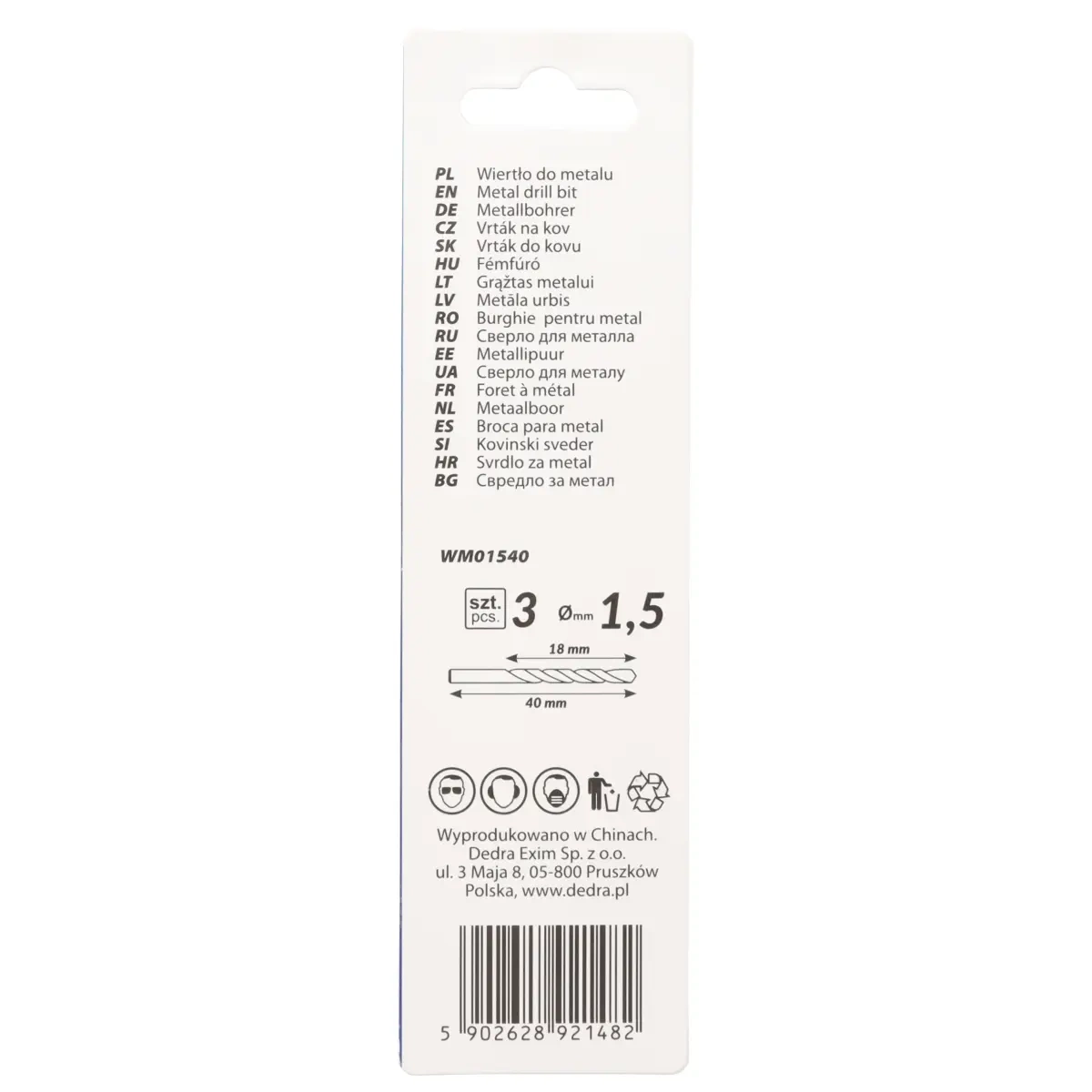 DEDRA metallpuurimispistoda WM01540 HSS, teras 4341, 135°, 1,5x40mm, 3tk
