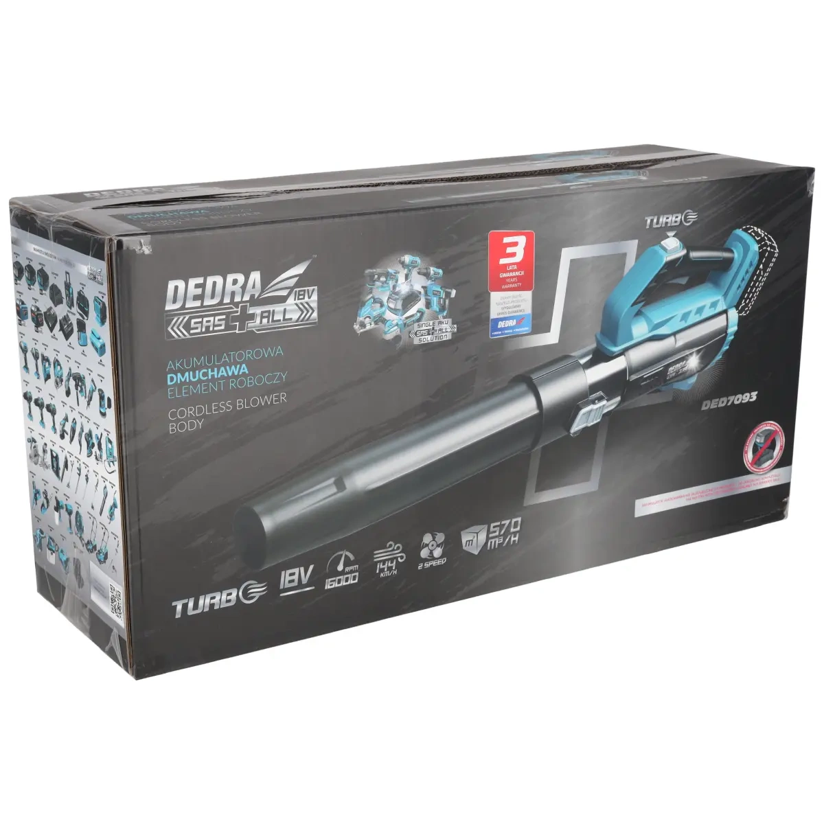 Akudepuhuril DED7093 on TURBO-funktsioon, mille aktiveerimisel suureneb puhumisvõimsus maksimaalselt, mis võimaldab eemaldada raskemat prahti, näiteks raskesti ligipääsetavates kohtades asuvat märga lehte või mustust.