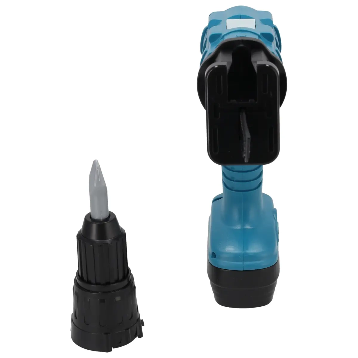 Mänguasjal on vahetatav pea, mis võimaldab mängida kas kruvikeeraja või saebriga - see teeb sellest 2-in-1 mänguasja ning kui teie lapsele hakkab üks seade ära tüütama, saate selle kiiresti teise vastu vahetada. Lisaks on komplektis kolm puurijat, nii et saame tööriistaga mängimise muuta realistlikumaks ja mitmekesisemaks.