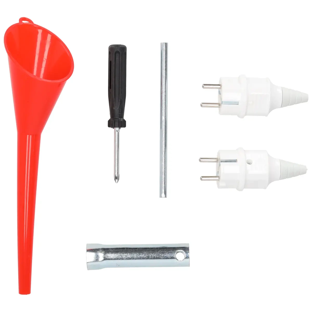 Seadmega kaasas olev komplekt sisaldab pistikuvõtit, kahte 16A pistikut, 12 V D-kaablit ja kruvikeerajat.