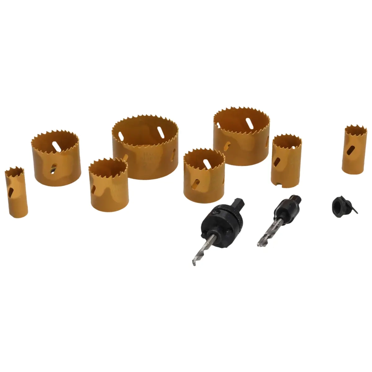 2 tokmányból és 8 kétfém furatfűrészből álló készlet furatok készítéséhez olyan anyagokban, mint fém, rozsdamentes acél, színesfémek, alumínium, fa vagy műanyag. A furatok kiváló minőségű HSS gyorsfúró acélból készülnek. A megfelelő dőlésszög és a fogak távolsága biztosítja a hatékony és gyors lyukgyártást. A lyukfűrész használatakor