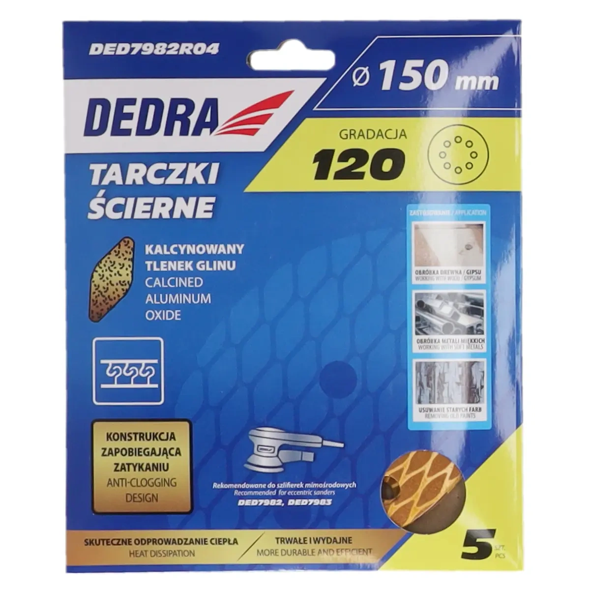 A tárcsákat a DED7982 és DED7983 excentrikus csiszológépekhez ajánljuk, és 60-tól 600-ig terjedő fokozatban kaphatók.