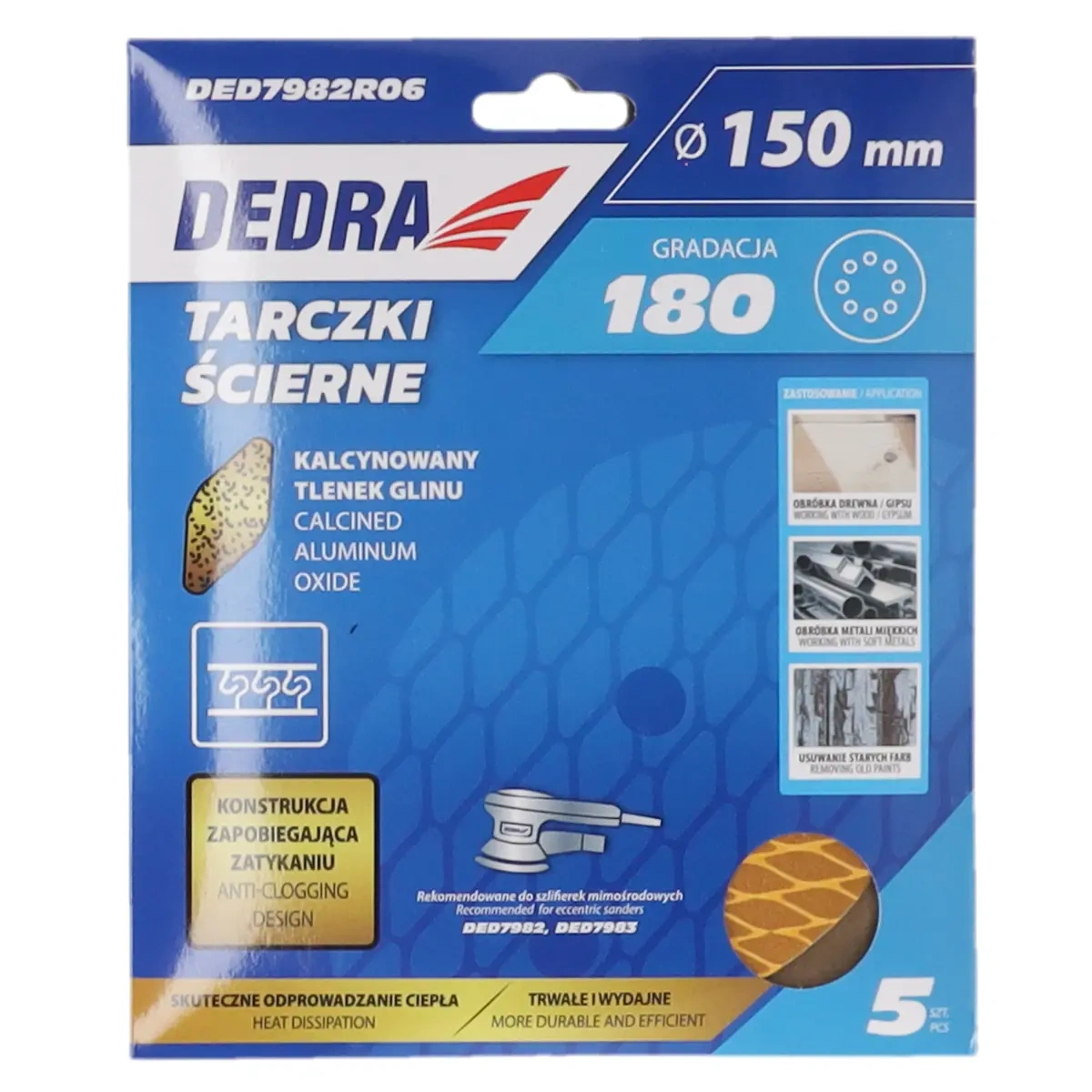 Dugulásgátló csiszolókorongok 150mm, #180, tépőzáras, 5 db-os készlet, DED7982R06
