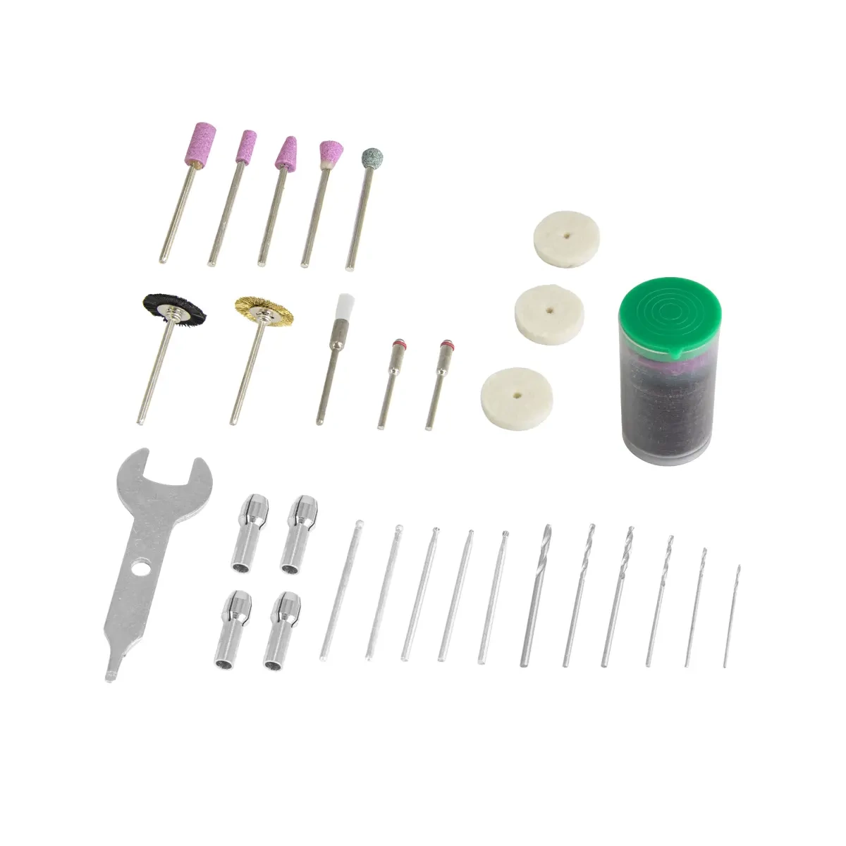 A készlet 47 tartozékot tartalmaz, amelyek azonnali munkakezdést tesznek lehetővé.