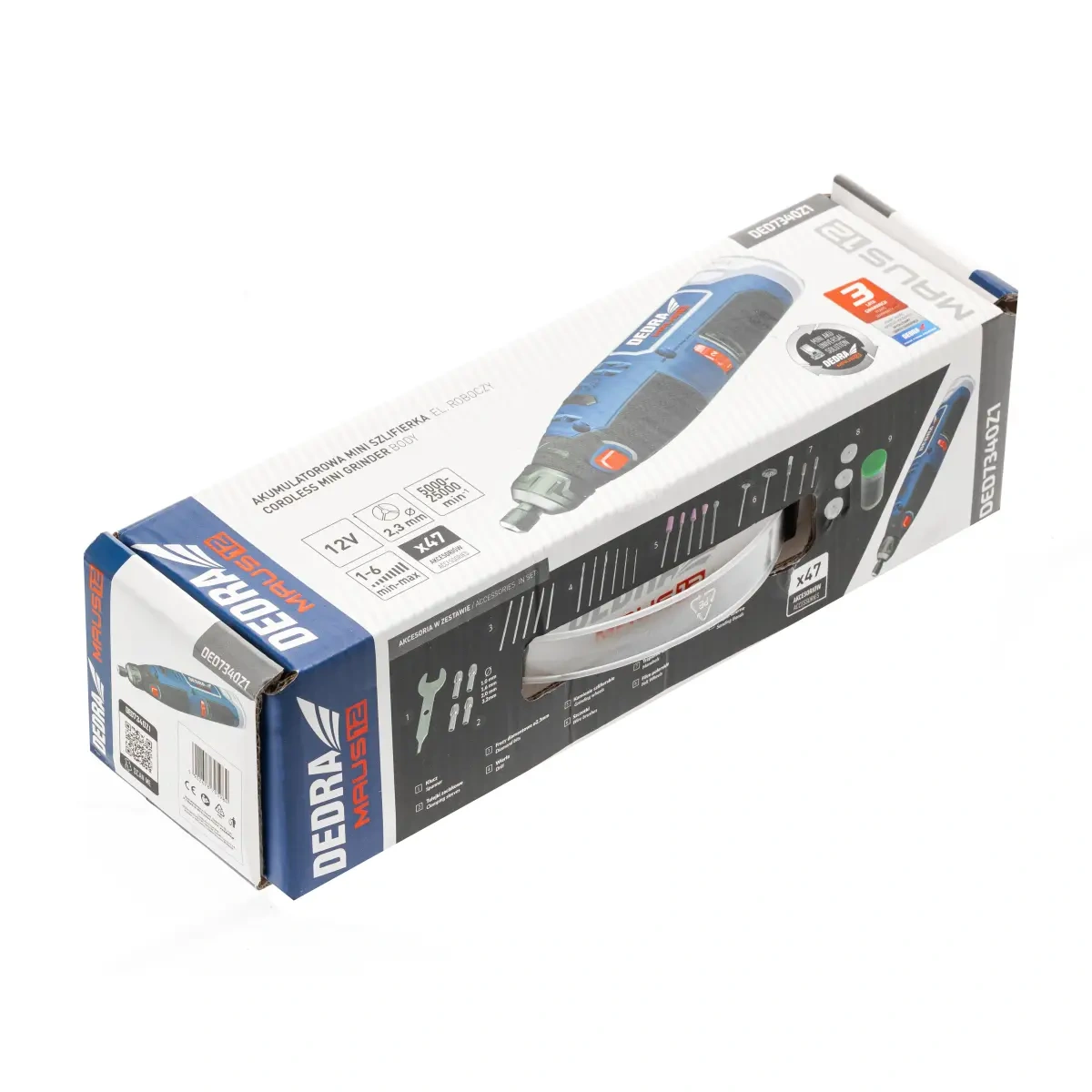 Akkumulátoros mini csiszoló 12V DEDRA MAUS DED7340Z1 + 47 tartozék