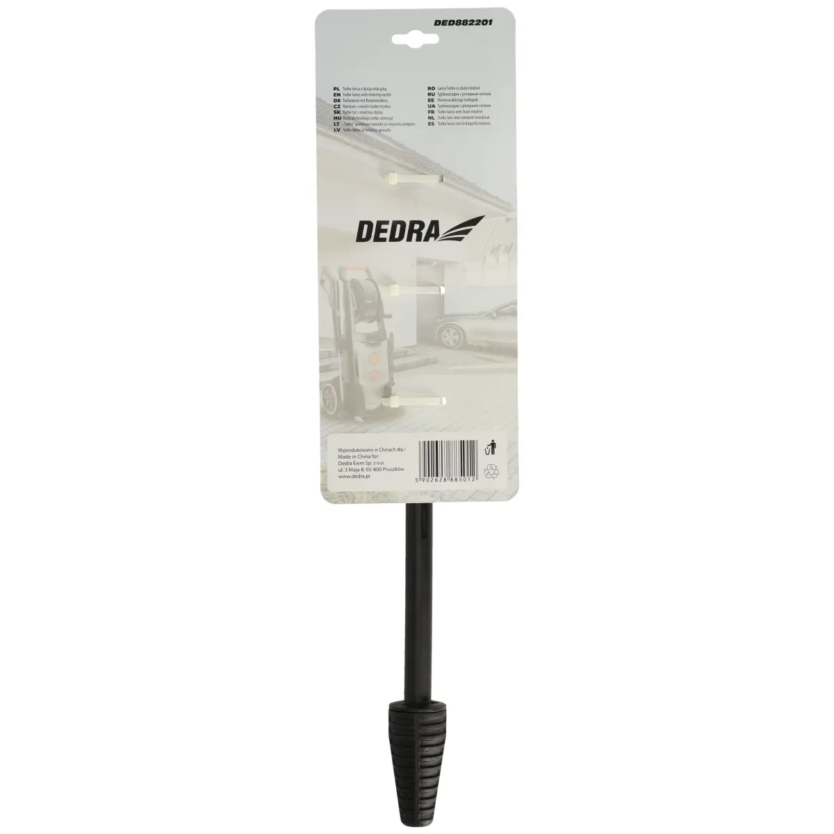 Tur bo lance ar rotējošo sprauslu DED882201, piemērots augstspiediena tīrīšanas līdzekļiem DED8819, DED8821, DED8822. Ar turbo lāpstiņu jūs maksimāli paaugstināsiet tīrīšanas veiktspēju un efek tivitāti. Ar turbo lāpstiņu no tīrāmās virsmas varatnotīrīt pat visneizturamākos netīrumus.