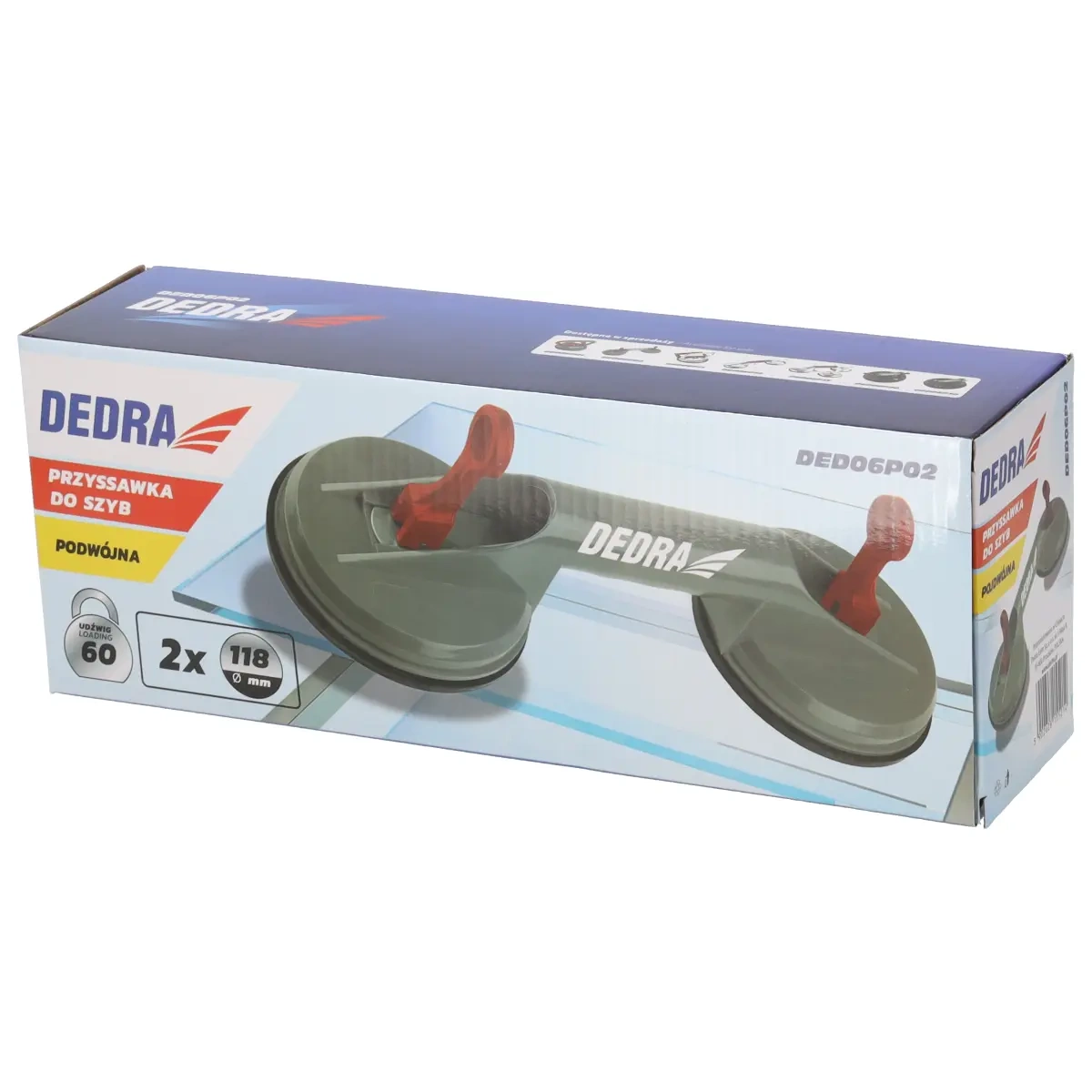 Glazūras piesūcekņa DED06P02 maksimālā kravnesība ir 60 kg, tāpēc tas ir vislabāk piemērots liela izmēra paneļu, plākšņu transportēšanai.
