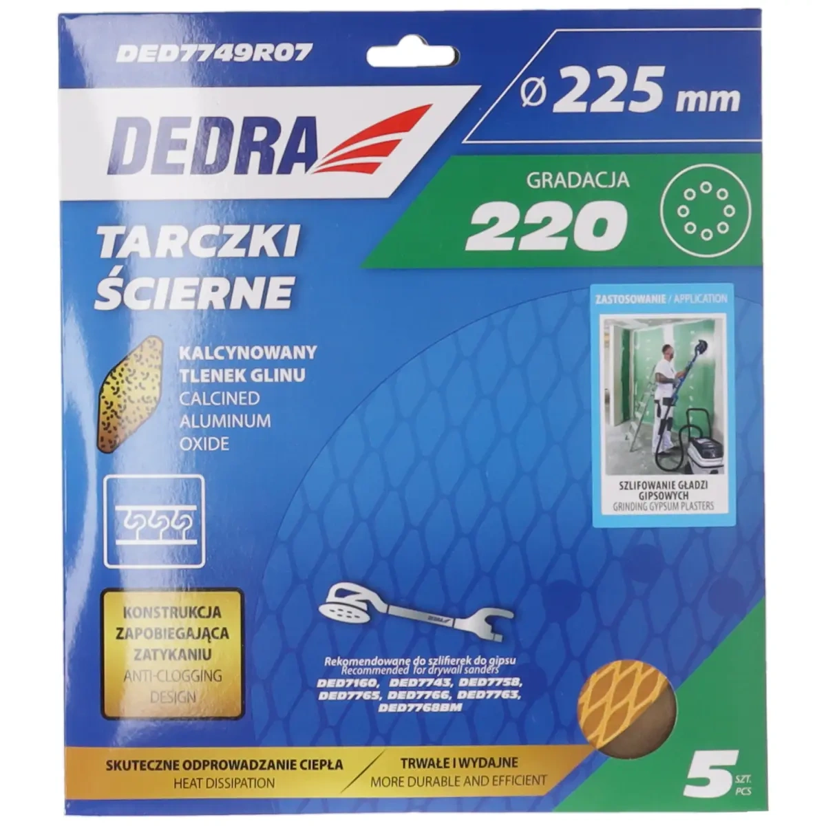 DEDRA DED7749R07 Anti-clog abrazīvo disku tehniskie dati: