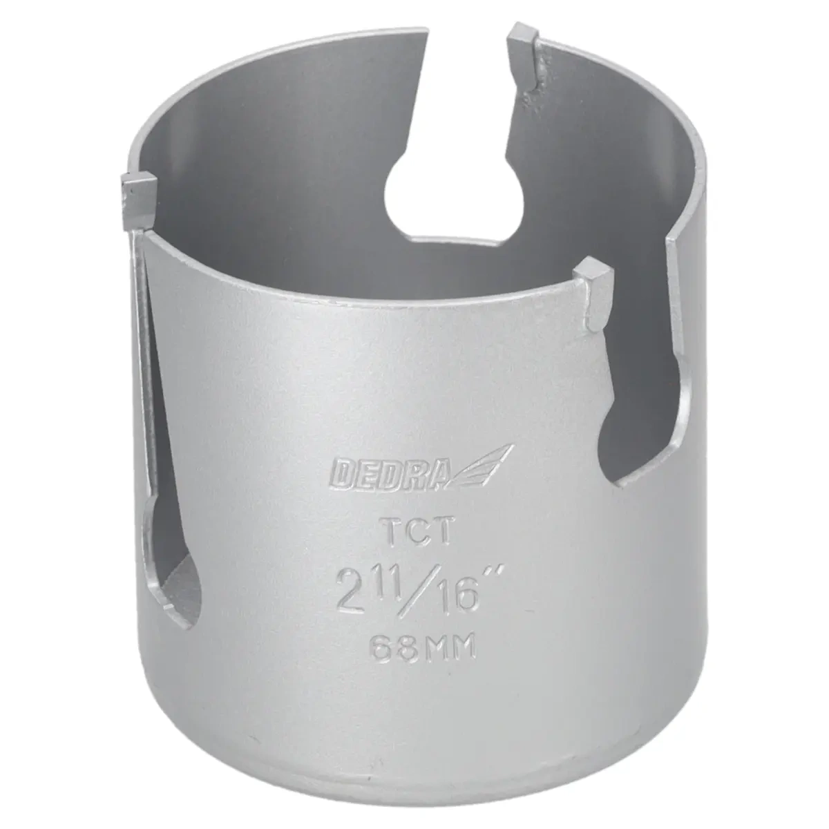 Tikrasis dydis nurodytas gaminio aprašyme. Universalusis skylių pjūklas yra nepakeičiamas "pasidaryk pats" dirbtuvių įrankis. Dėl specialios pjovimo briaunos konstrukcijos padidėja skylių pjūklo tvirtumas ir pagerėja skylių vedimas. Naudojant HE X 10 mm 1 /2" griebtuvus 08X001 (rekomenduojama naudoti skylėms: 08X019-08X030) ir 5/8" griebtuvus 08X002 (rekomenduojama naudoti skylėms: 08X032-08X152), skylių pjūklus galima naudoti su gręžimo staklėmis arba gręžtuvais.Naudojant SDS+ griebtuvą 08X 003 (rekomenduojamas skylėms: 08X 032 - 08X152), galima naudoti DEDRA08 X platųjį gręžtuvą su smūginiu gręžtuvu ne smūginio gręžimo režimu. Siekiant pagerinti pjovimo efektą ir padidinti tvirtumą, skylėse yra keli šakutės įdėklai, kurie veiksmingai apdirba medžiagą. Naudojant tinkamus bandomuosius grąžtus, universalius bandomuosius grąžtus DEDRA08 X galima naudoti medienai, metalui, baldų plokštėms, PVC, mineralinėms medžiagoms, pvz., keraminėms plytelėms, akytajam betonui ir silikatams, gręžti.Siekiant padidinti kiaurymės tvirtumą,šerdis gaminama iš aukštos kokybės 1,5 mm storio HCS plieno Nr. 45, o dantys - iš volframo karbido su 6 % kobalto (volframo plienas YG 6X). Tai pagerina nuoplovų kokybę ir ilgaamžiškumą bei padidina gręžimo efektyvumą.