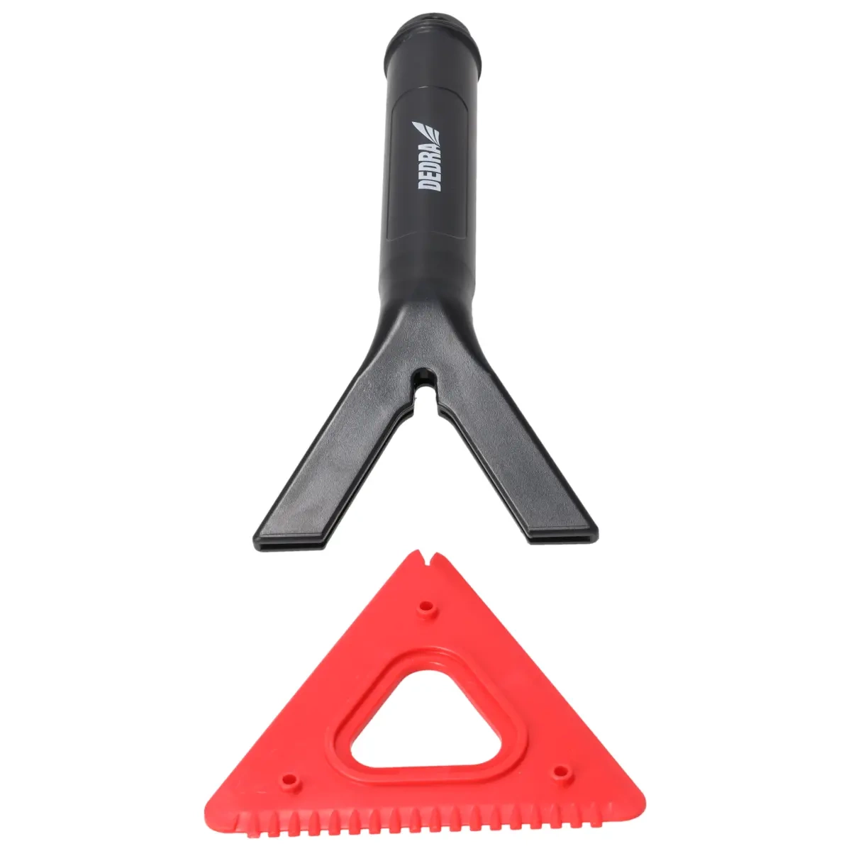 - Nuimamas trikampis - galimybė greitai pakeisti funkcijas, kad galėtumėte veiksmingai pašalinti ledo sluoksnį skirtingu intensyvumu.