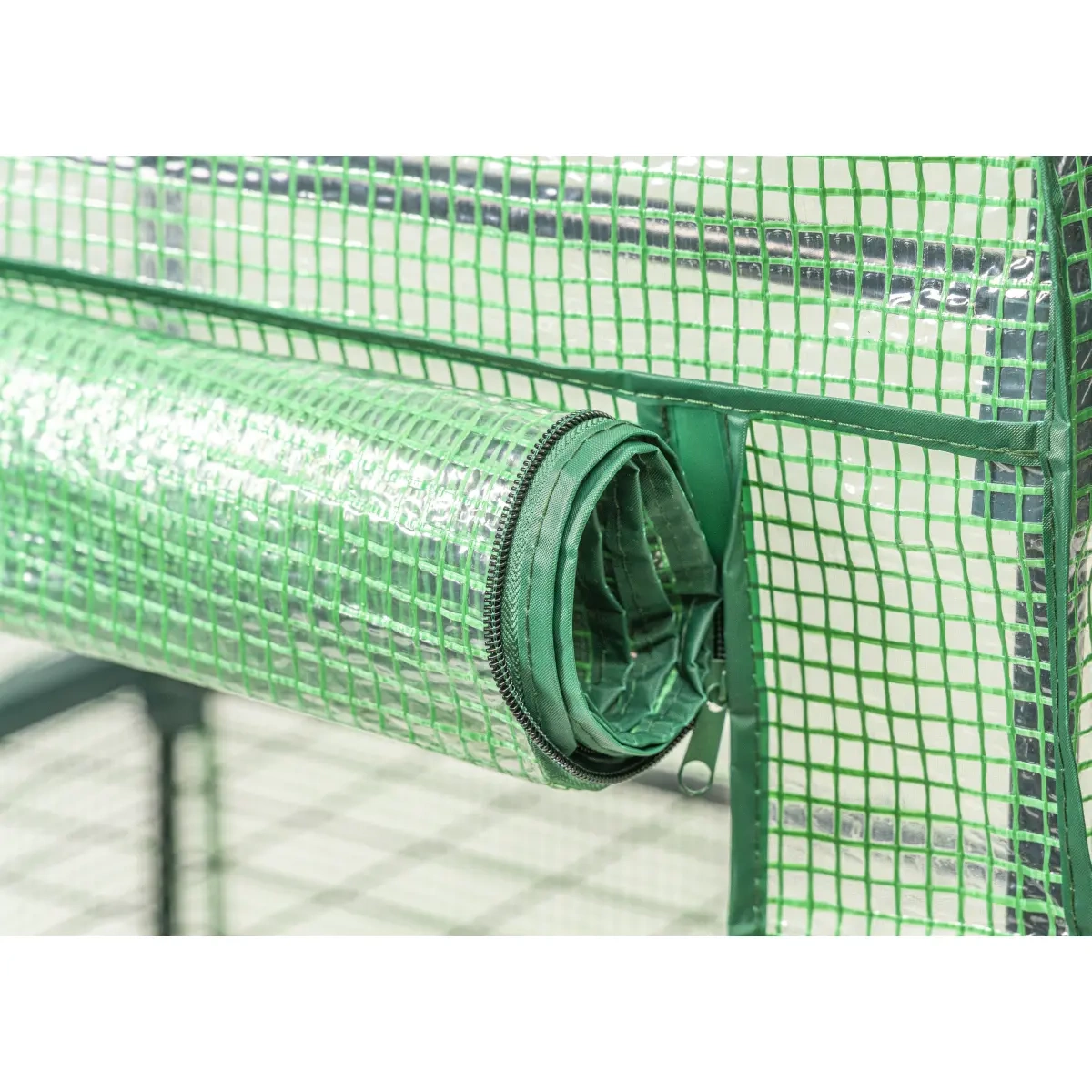 - Priekinis atidarymas su užtrauktuku – leidžia greitai atidaryti ir uždaryti šiltnamį, užtikrinant patogų patekimą į augalus