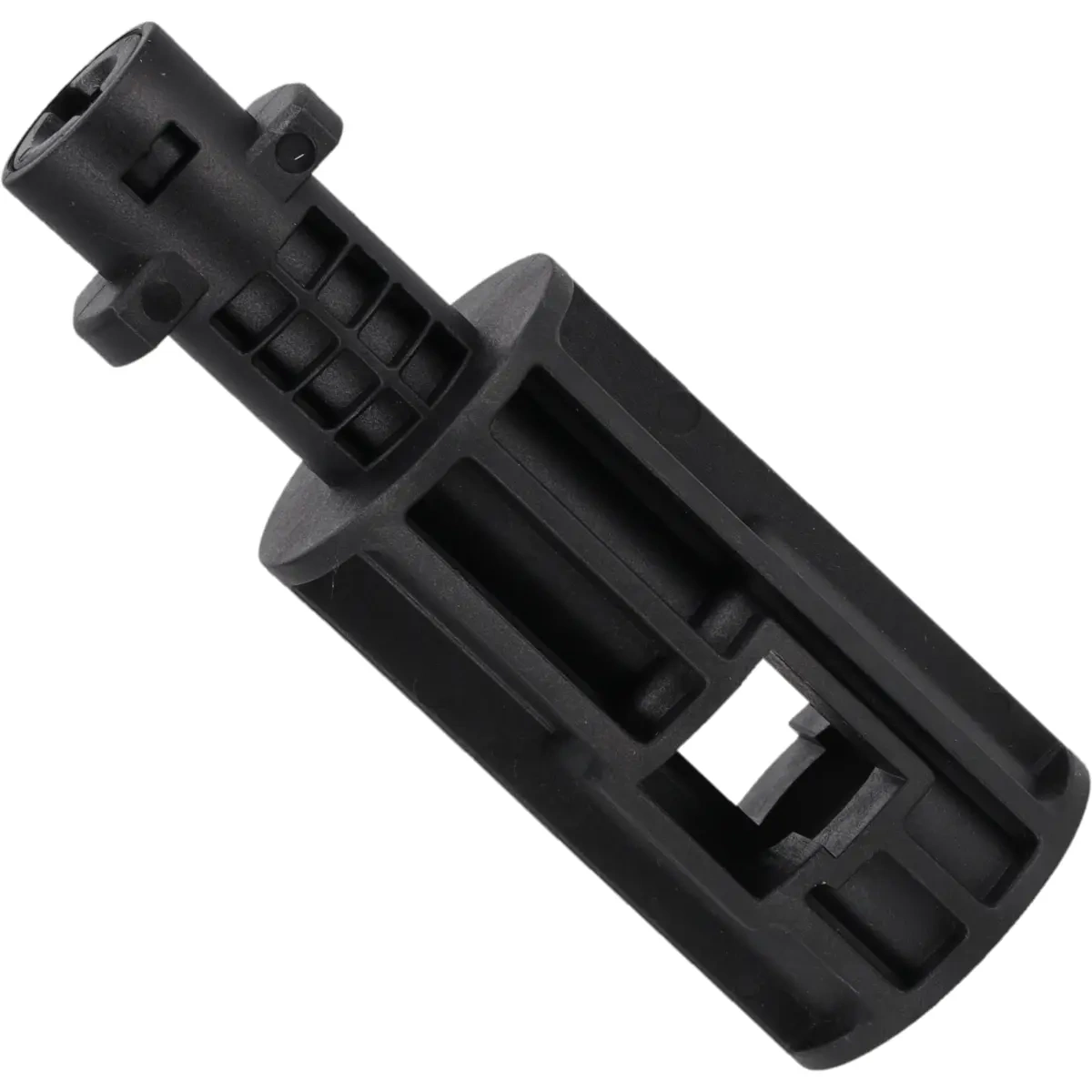 Przejściówka DED882207, pozwala na podłączenie wszystkich akcesoriów do myjek wysokociśnieniowych firmy DEDRA do myjek firmy Karcher, wyprodukowanych do roku 2017.