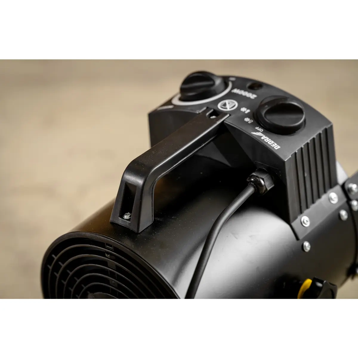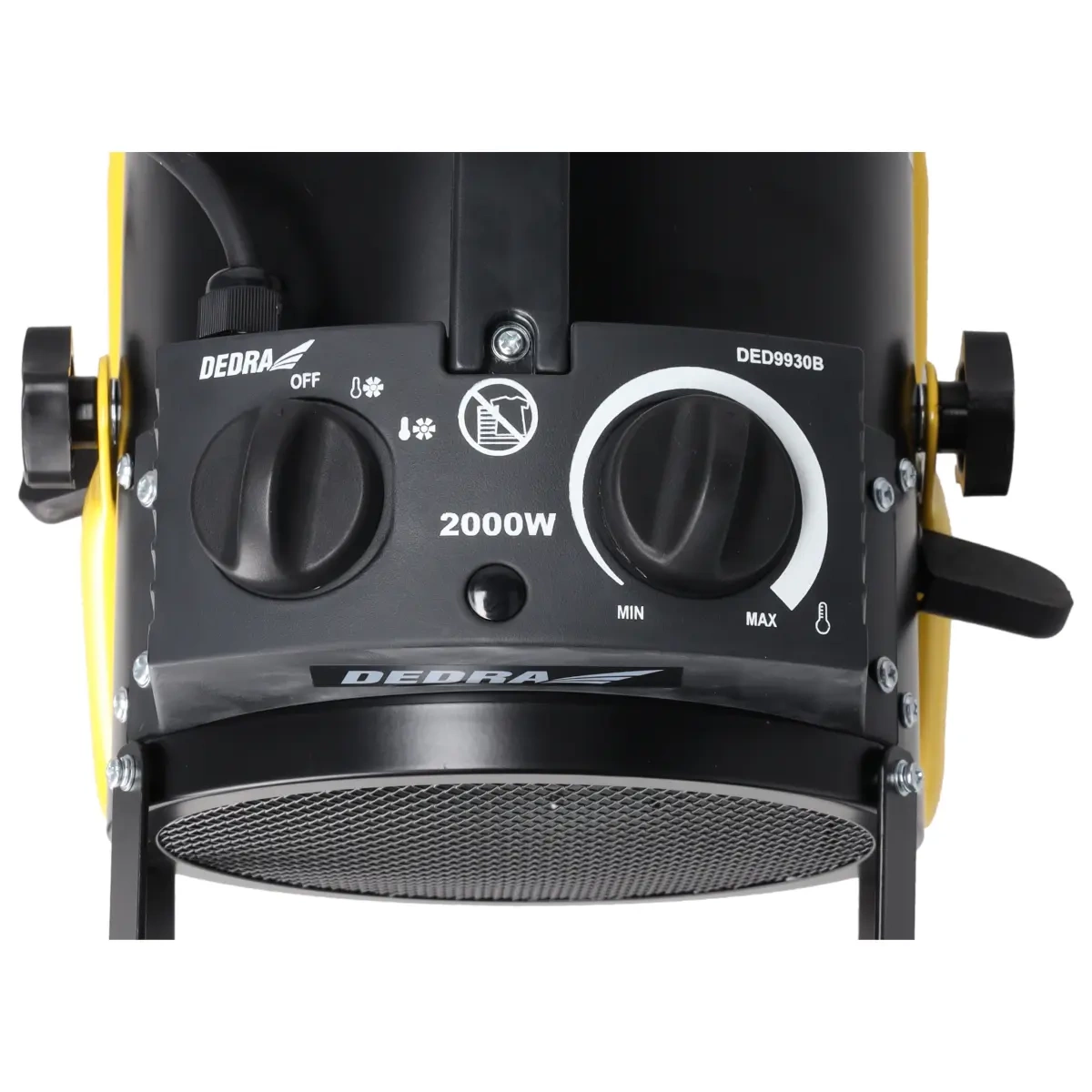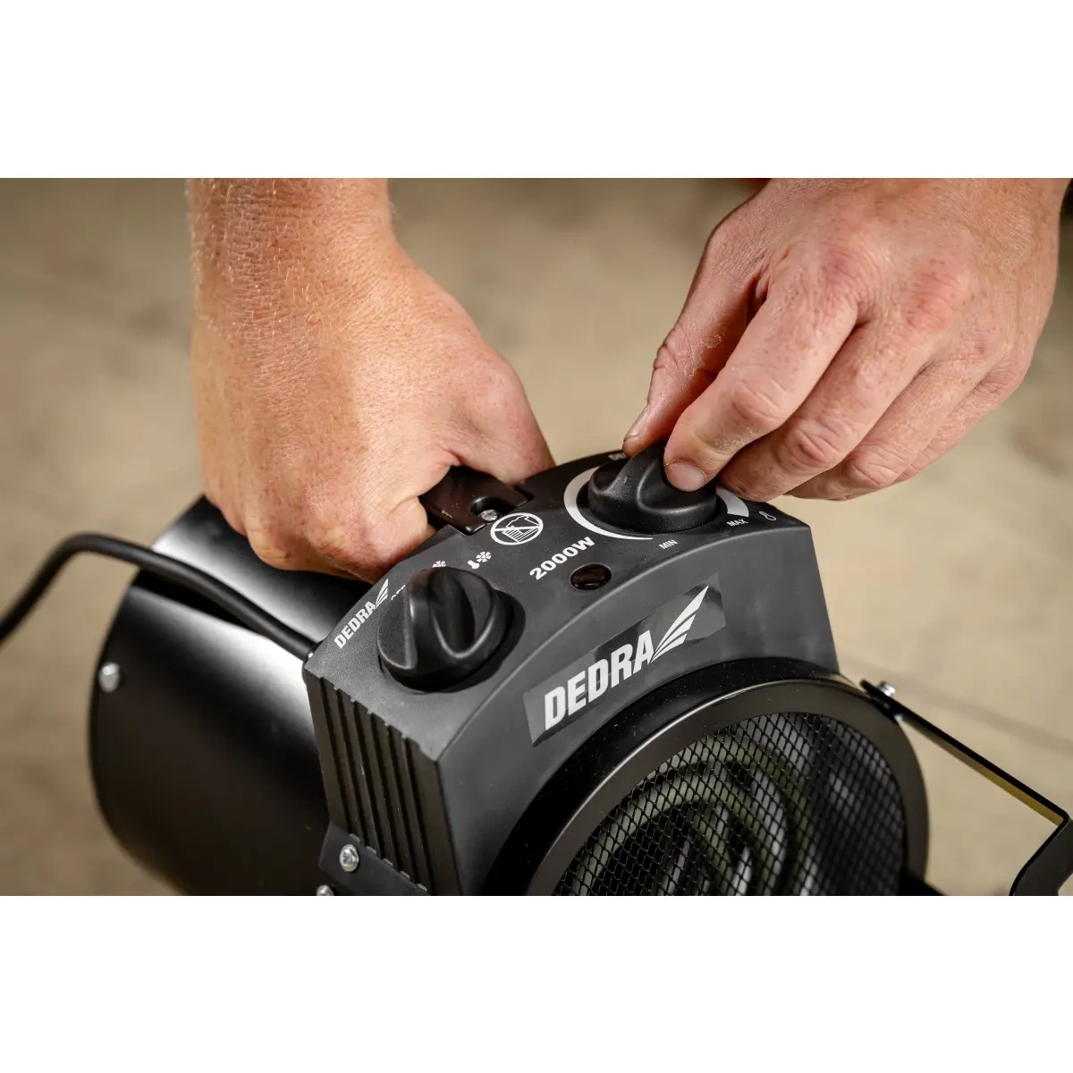 Nagrzewnica elektryczna DED9930B ma wbudowany czujnik temperatury, regulator mocy i termostat. Konstrukcja nagrzewnicy umożliwia także regulację kąta strumienia ciepłego powietrza. Przy ustawieniu pokrętła temperatury na minimum, urządzenie może służyć jako wentylator bez funkcji ogrzewania. Nagrzewnica dzięki niewielkiej wadze, małym gabarytom i wygodnemu uchwytowi jest łatwa w transportowaniu.