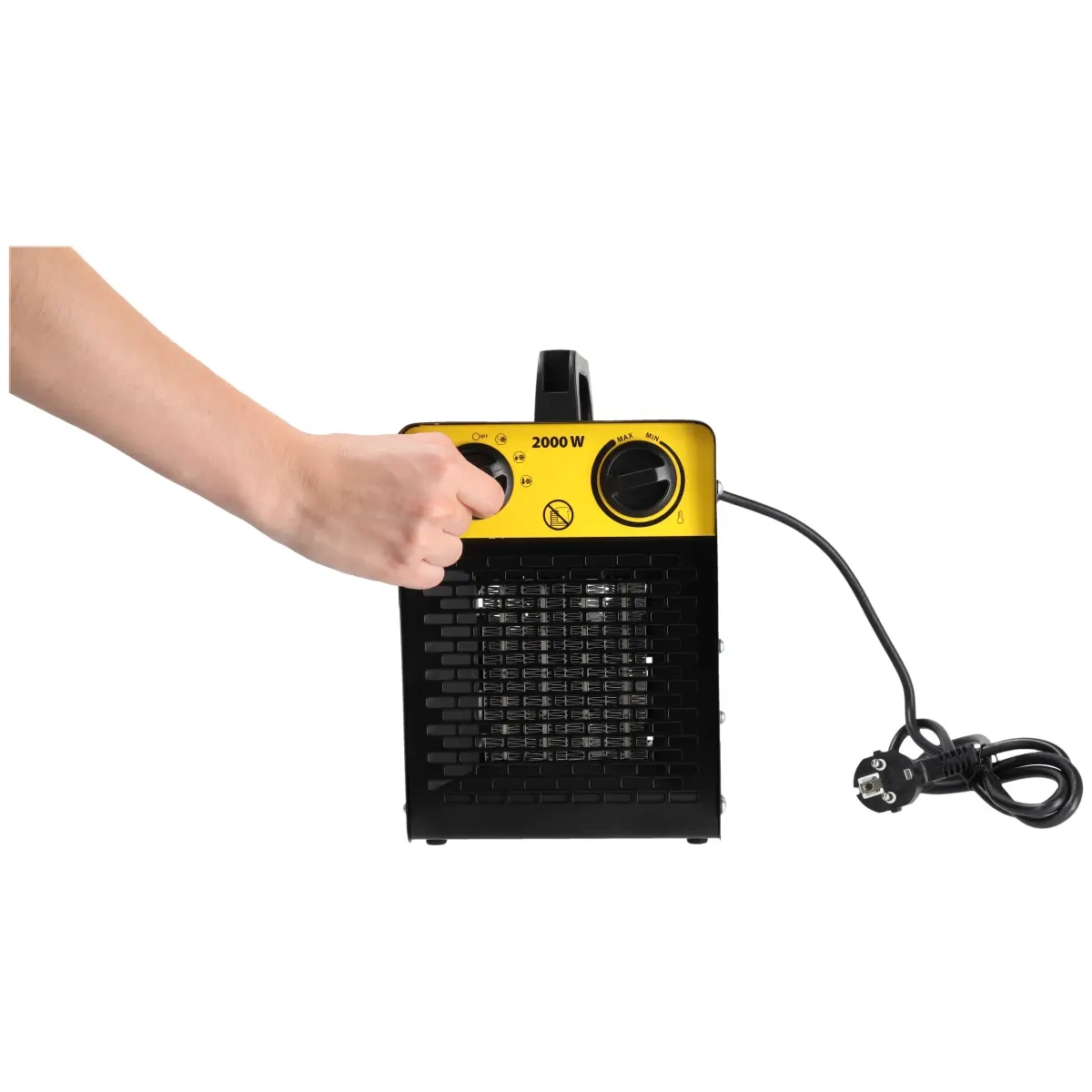 Ceramiczny element grzejny (PTC) sprawia, że ciepło jest odczuwalne niemal natychmiast po uruchomieniu. Podwójna metalowa obudowa nie nagrzewa się podczas pracy. Urządzenie cechuje się cichą pracą. Wygodny uchwyt transportowy.