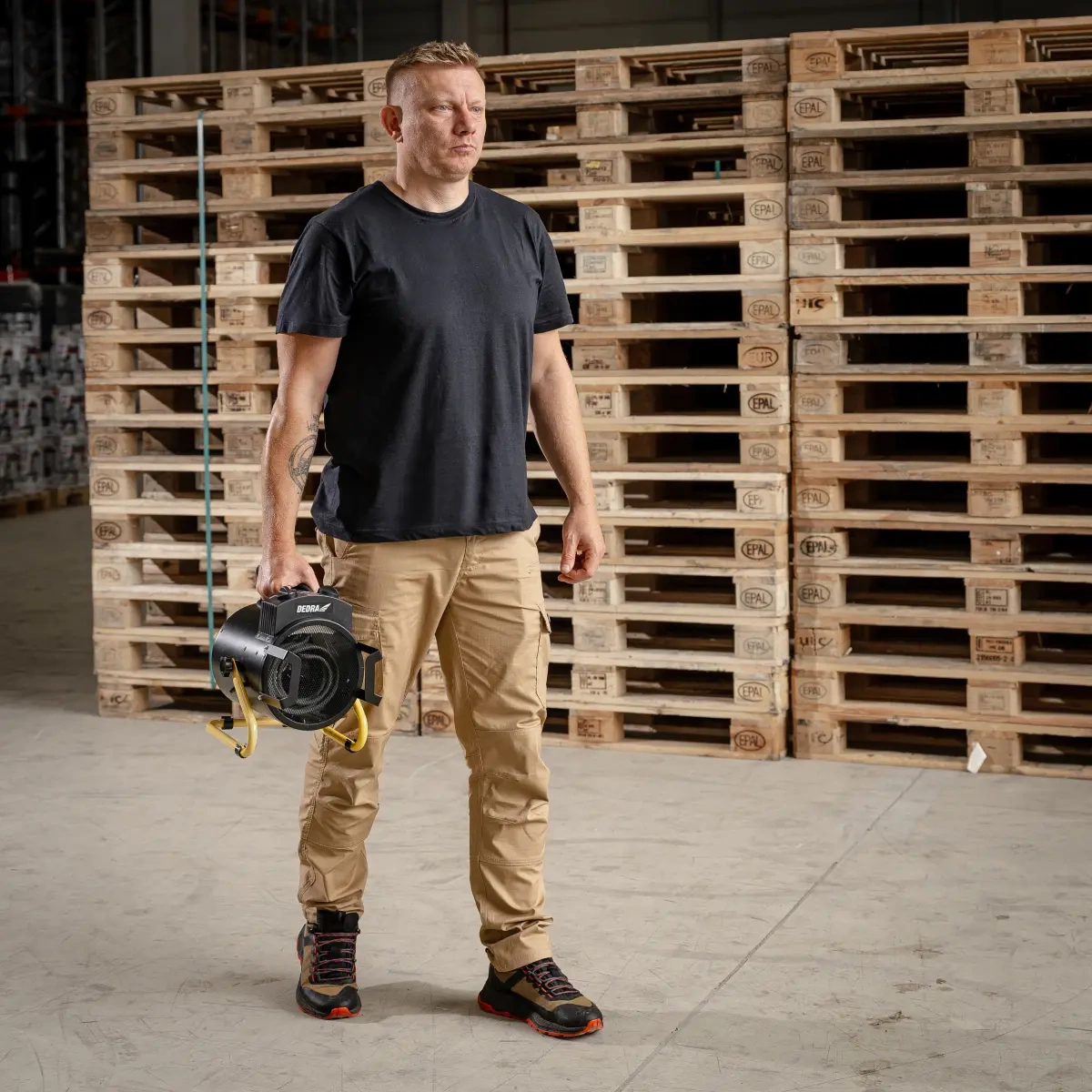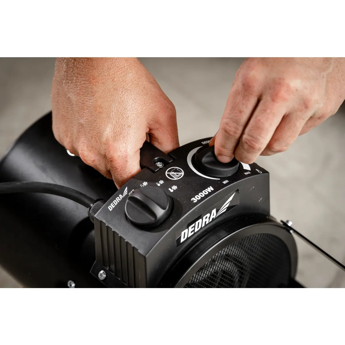 Nagrzewnica elektryczna DED9931B ma wbudowany czujnik temperatury, regulator mocy i termostat. Konstrukcja nagrzewnicy umożliwia także regulację kąta strumienia ciepłego powietrza. Przy ustawieniu pokrętła temperatury na minimum, urządzenie może służyć jako wentylator bez funkcji ogrzewania. Nagrzewnica dzięki niewielkiej wadze, małym gabarytom i wygodnemu uchwytowi jest łatwa w transportowaniu.