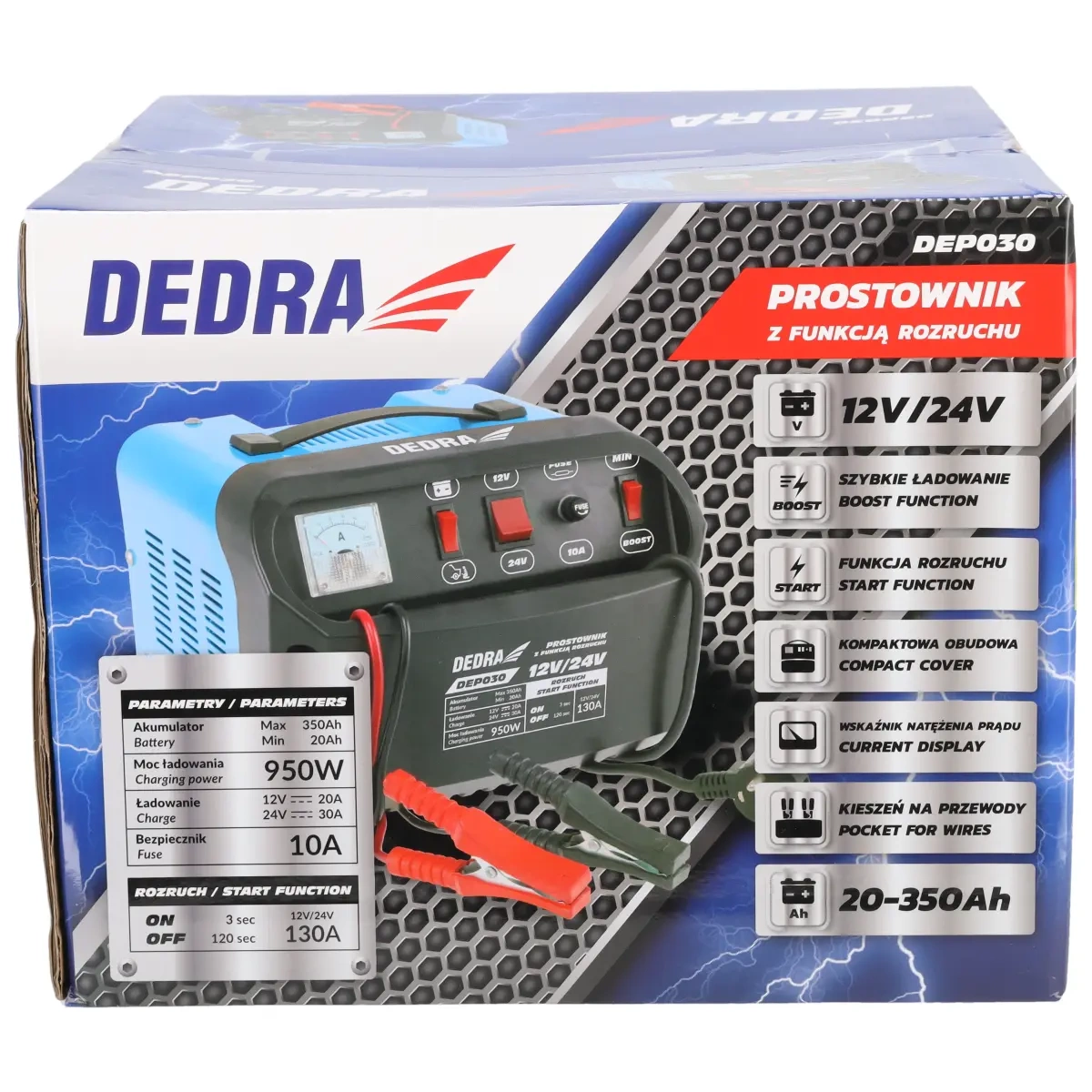 Prostownik z rozruchem DEDRA DEP030 12/24V 20-350Ah