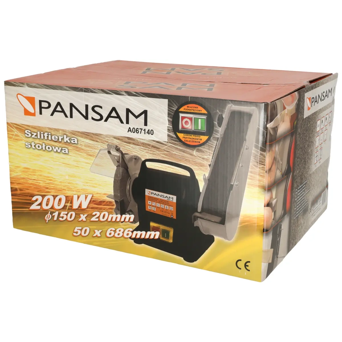 Obudowa wykonana jest w całości z metalu. Szlifierkę A067140 można przymocować do stołu roboczego. Szlifowany element można oprzeć o podpórkę, co zapewni większą precyzję wykonywanej pracy. Osłony na kamieniu i taśmie szlifierskiej zapewniają bezpieczeństwo podczas pracy.
