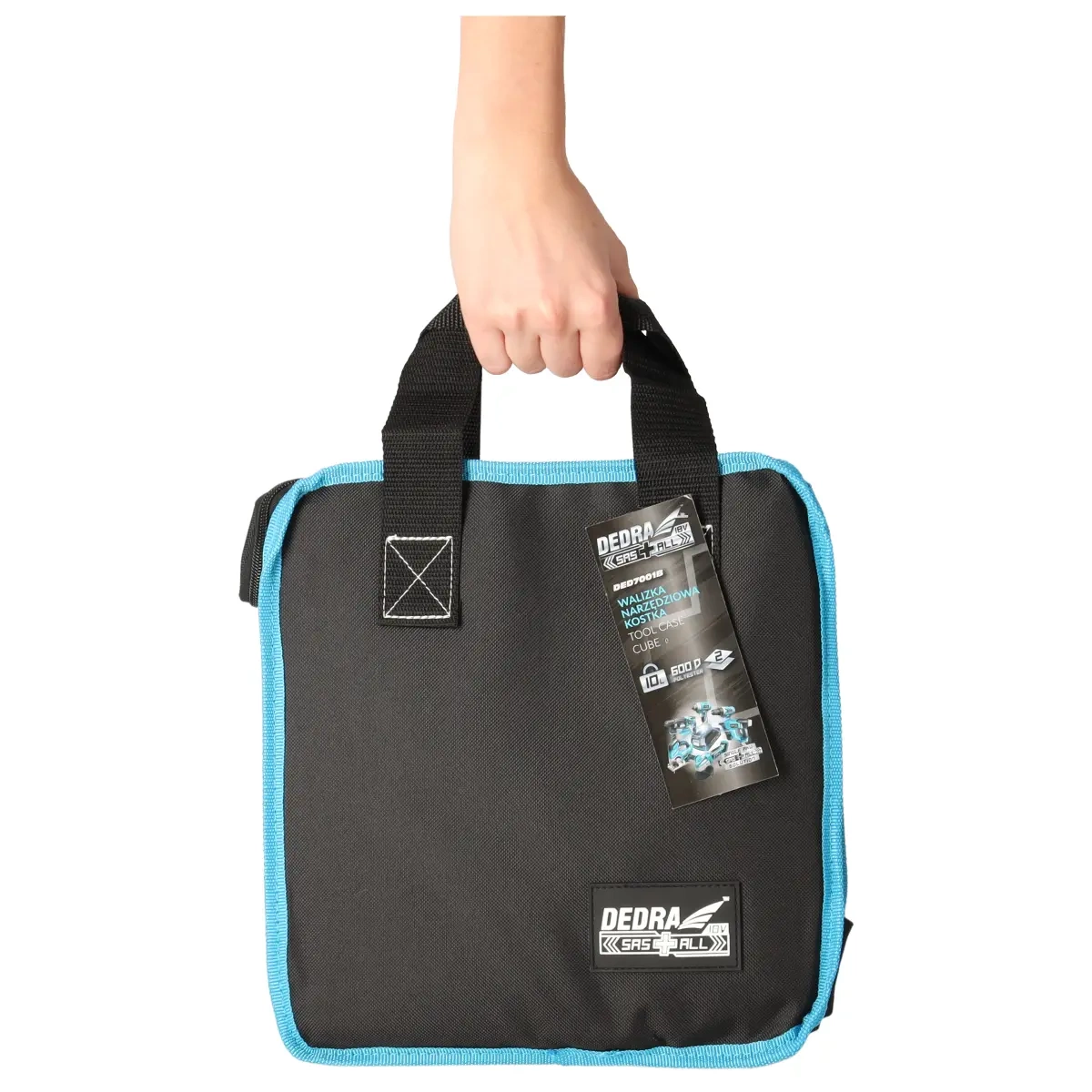Walizka narzędziowa typu kostka DED7001B to doskonały sposób na utrzymanie porządku podczas magazynowania oraz transportu swoich narzędzi z serii SAS+ALL. Walizka ma pojemność 10l i wykonana jest z wytrzymałego nieprzemakalnego dwuwarstwowego poliestru 600D, który zapewnia odporność produktu na uszkodzenia mechaniczne, ale również ochroni narzędzia podczas transportu. Walizka zamykana jest na zamek błyskawiczny i wyposażona w dwa paski/rączki.