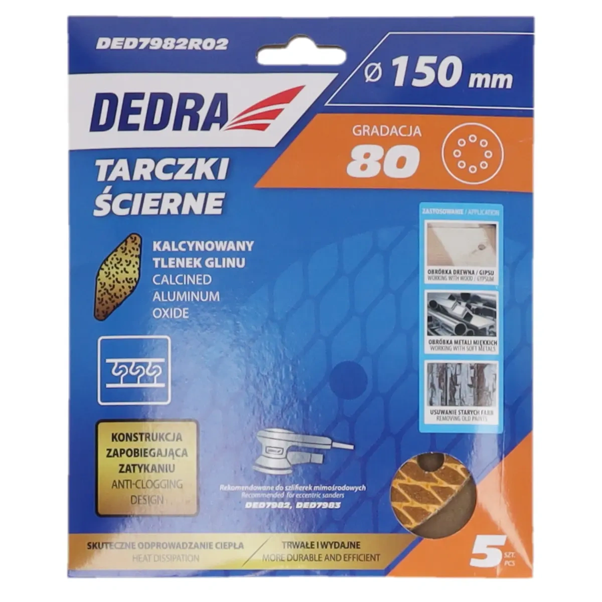 Tarcze są rekomendowane do użytku z szlifierkami mimośrodowymi DED7982 oraz DED7983 i dostępne w szerokim zakresie gradacji od 60 do 600.