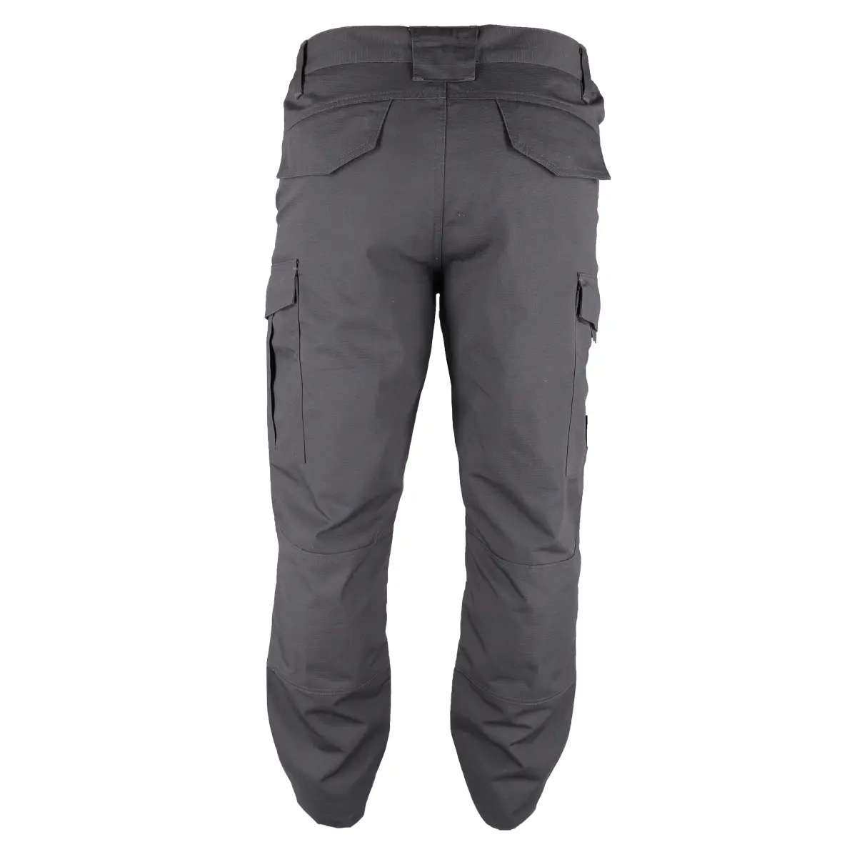 Uszyte z wytrzymałej tkaniny typu rip-stop wykazują podwyższoną odporność na przetarcia i uszkodzenia. Tkanina rip-stop posiada charakterystyczny, mocny splot z dodatkowymi, wzmacniającymi włóknami, dzięki czemu materiał staje się odporny na przetarcia, rozdarcia i inne uszkodzenia. Spodnie doskonale sprawdzą się nawet w trudnych warunkach czy podczas intensywnej pracy. W skład materiału wchodzi 65% poliestru i 35% bawełny, co zapewnia odpowiednią oddychalność i komfort.
