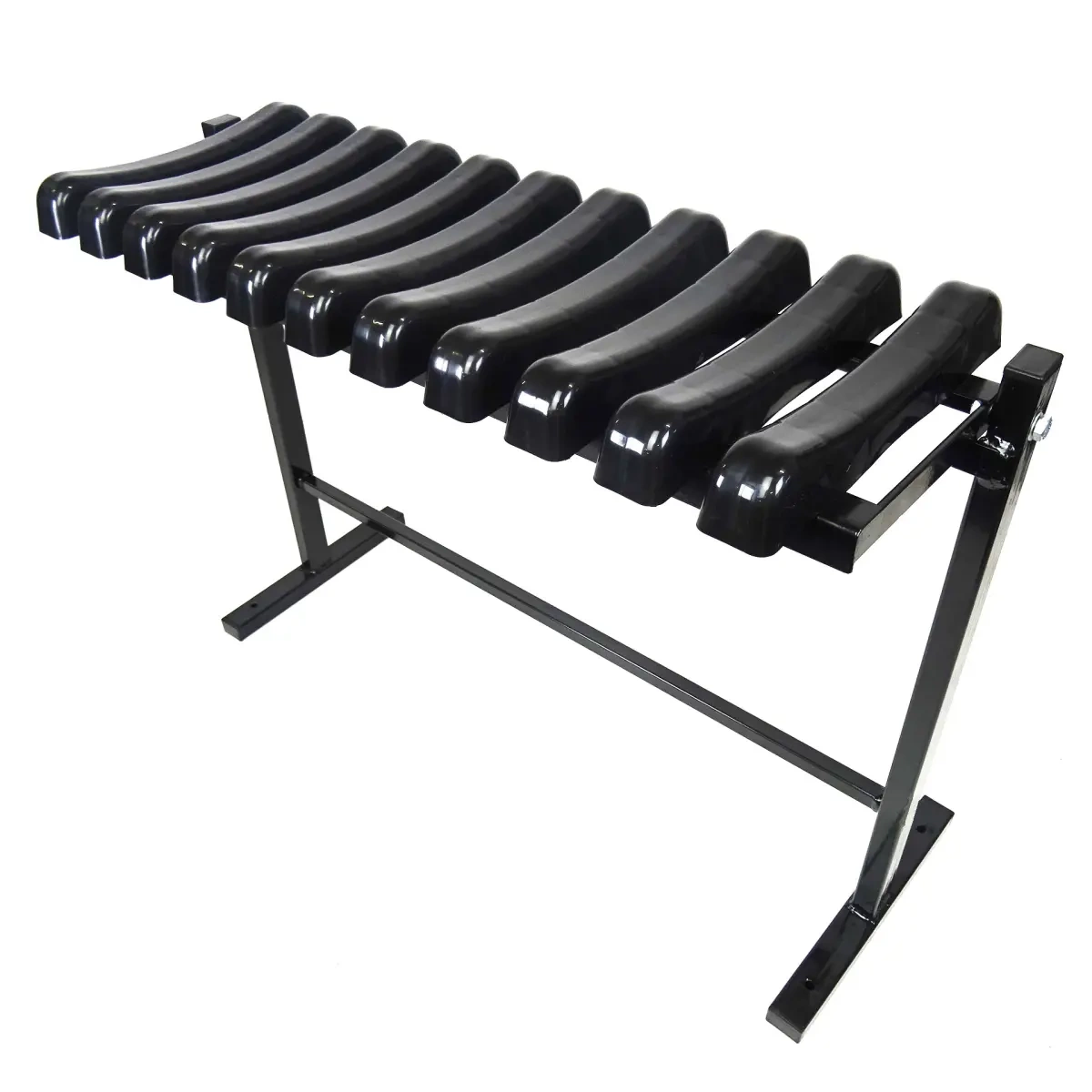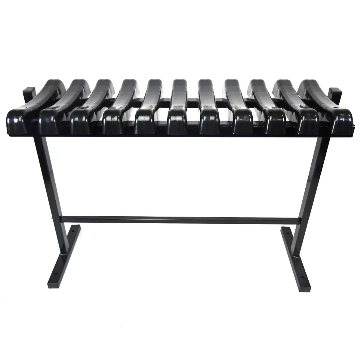 - Stalowy stelaż – gwarantuje stabilność ławki, solidność oraz odporność na obciążenia