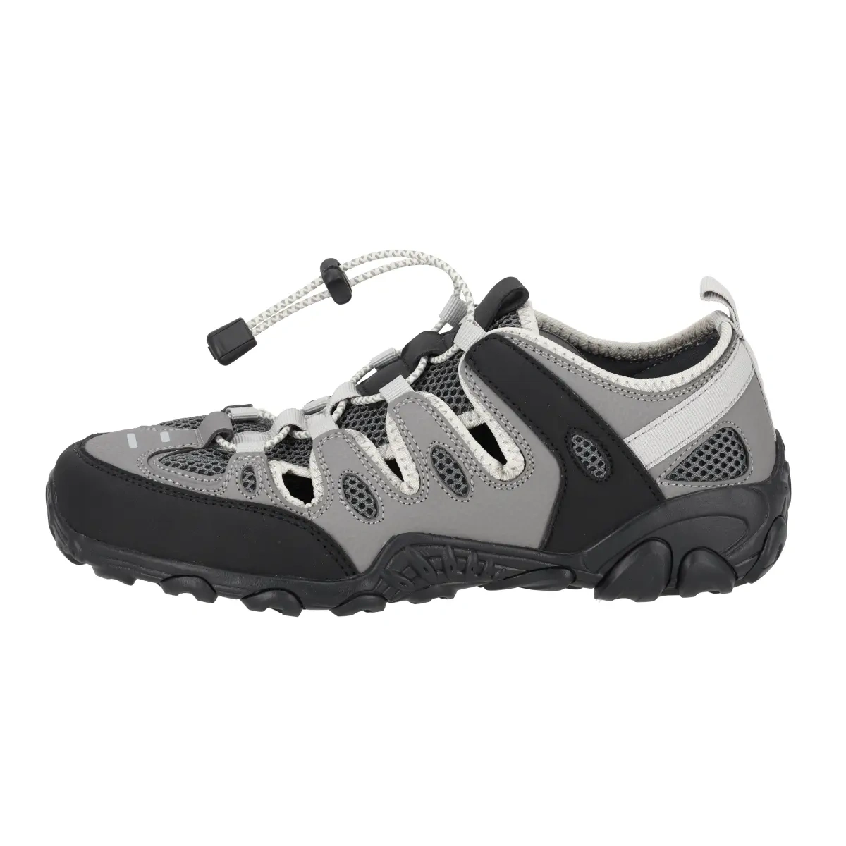 Sandały wyposażono w zapięcie na gumkę ze ściągaczem, które pozwala idealnie dopasować obuwie do stopy. Dobre przyleganie cholewki poprawia stabilizację, zapobiega przesuwaniu się stopy w bucie i minimalizuje ryzyko otarć czy powstawania dyskomfortu podczas ruchu.