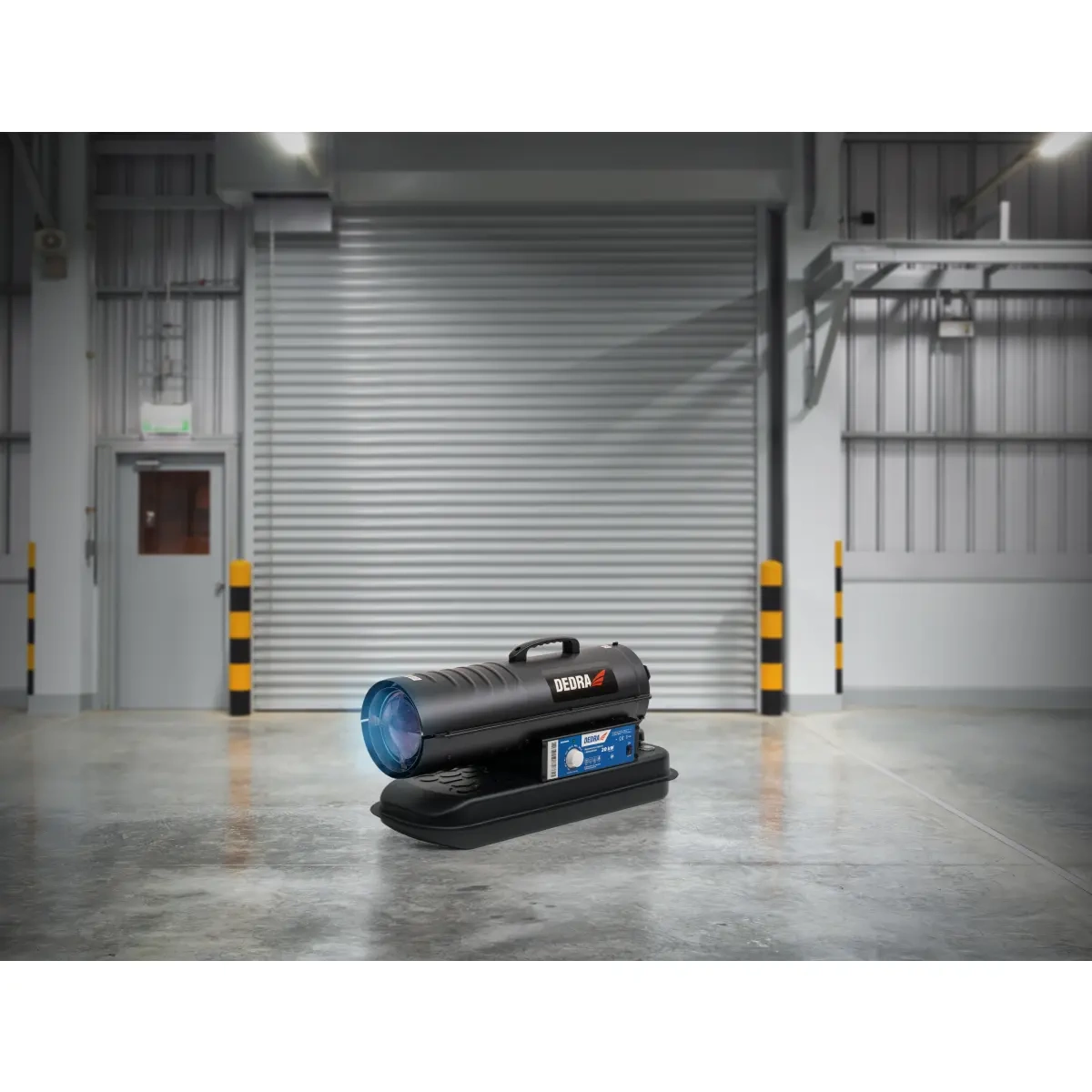 Încălzitorul cu contracurent DED9950A este proiectat pentru utilizare în încăperi închise. Se utilizează pent ru încălzirea spațiilor nerezidențiale, cum ar fi atelierele, depozitele, halele de producție, serele sau în timpul lucrărilor de reparații și construcții. Încălzitorul funcționează cu motorină sau păcură ușoară. Aparatul poate fi utilizat numai în încăperi cu ventilație eficientă. Carcasa metalică nu se încălzește, chiar și în timpul unor perioade lungi de funcționare. Un dispozitiv de protecție termică asigură o funcționare sigură. Încălzitorul are un buton pentru setarea și reglarea temperaturii. Mâner pentru transport și depozitareușoară.Acest produs nu poate fi folosit ca sursă principală de încălzire.