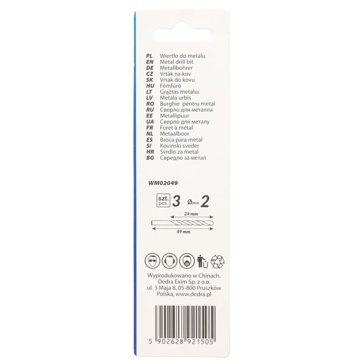 Burghie pentru metal 3buc, HSS, DIN338, 2,0x49mm