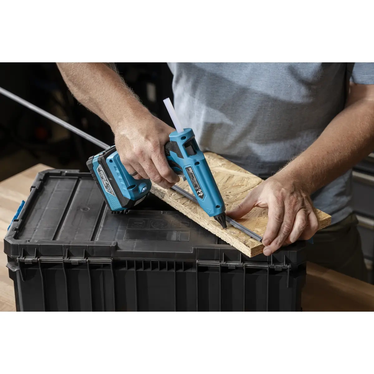 Cu ajutorul pistolului de lipit cu clei topit la cald, puteți îmbina materiale precum lemnul, plasticul, metalul, pielea sau cauciucul. Componentele sunt îmbinate cu ajutorul cartușelor de adeziv cu un diametru de 11 mm. Pistolul se caracterizează prin designul său ușor și durabil și este foarte ușor și confortabil de utilizat. Pistolul este folosit de profesioniști, pasionați de bricolaj și decoratori deopotrivă (decoupage). Pistolul este alimentat de o baterie reîncărcabilă, ceea ce permite lucrul în locuri în care nu este posibilă alimentarea de la rețeaua electrică, de exemplu, în cazul unei pene de curent sau într-o parcare sau grădină. Mânerul rotunjit, cu formă ergonomică, oferă un confort excelent în timpul utilizării. Timpul
