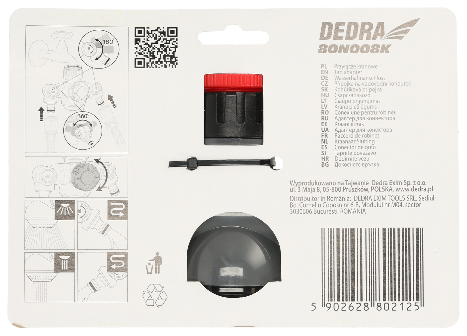 Conectorul dublu pentru robinet DEDRA 80N008K este o soluție funcțională, care se potrivește perfect în grădină, atelier sau la țară
