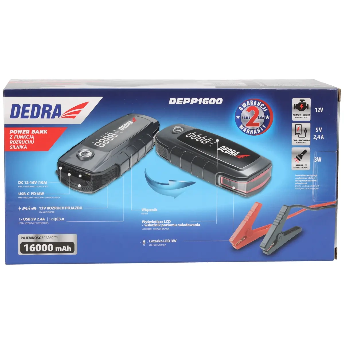 Power-bank cu funcție de pornire a motorului DEDRA DEPP1600, Li-Ion 16000mAh, ecran LCD