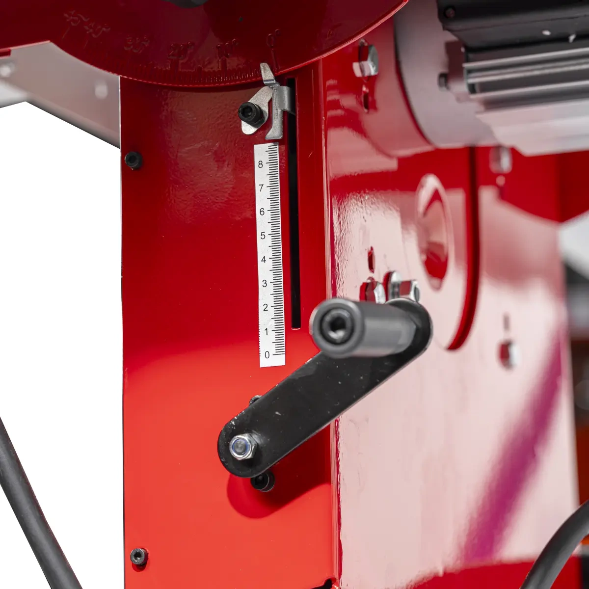 Машина для профессиональной резки древесины и деревоподобных материалов. Оснащен очень мощным 3-фазным двигателем мощностью 3400 Вт, работающим с лезвием 315/30 мм и рабочей поверхностью 800x550 мм, поддерживаемой дополнительными 2 рабочими поверхностями 800x400 мм. Имеет возможность регулировки угла резания до макс. 45 градусов. Также в комплект входит система удаления стружки, встроенная в кожух ножа, позволяющая подключить внешнее устройство для удаления пыли