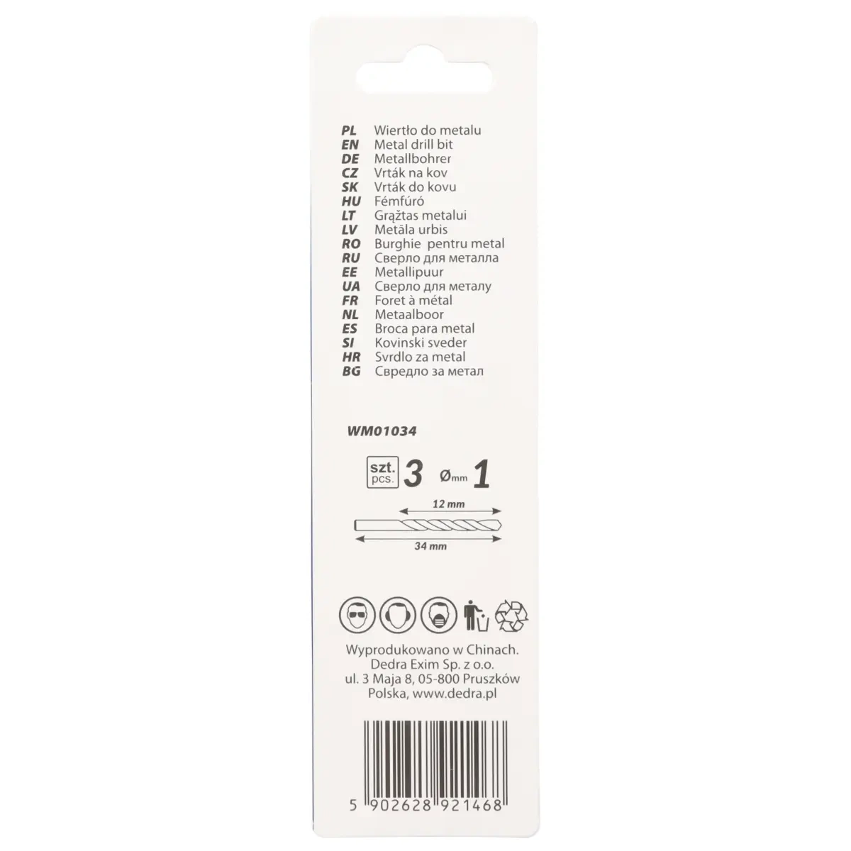 Сверло по металлу DEDRA WM01034 HSS, сталь 4341, 135°, 1х34мм, 3шт