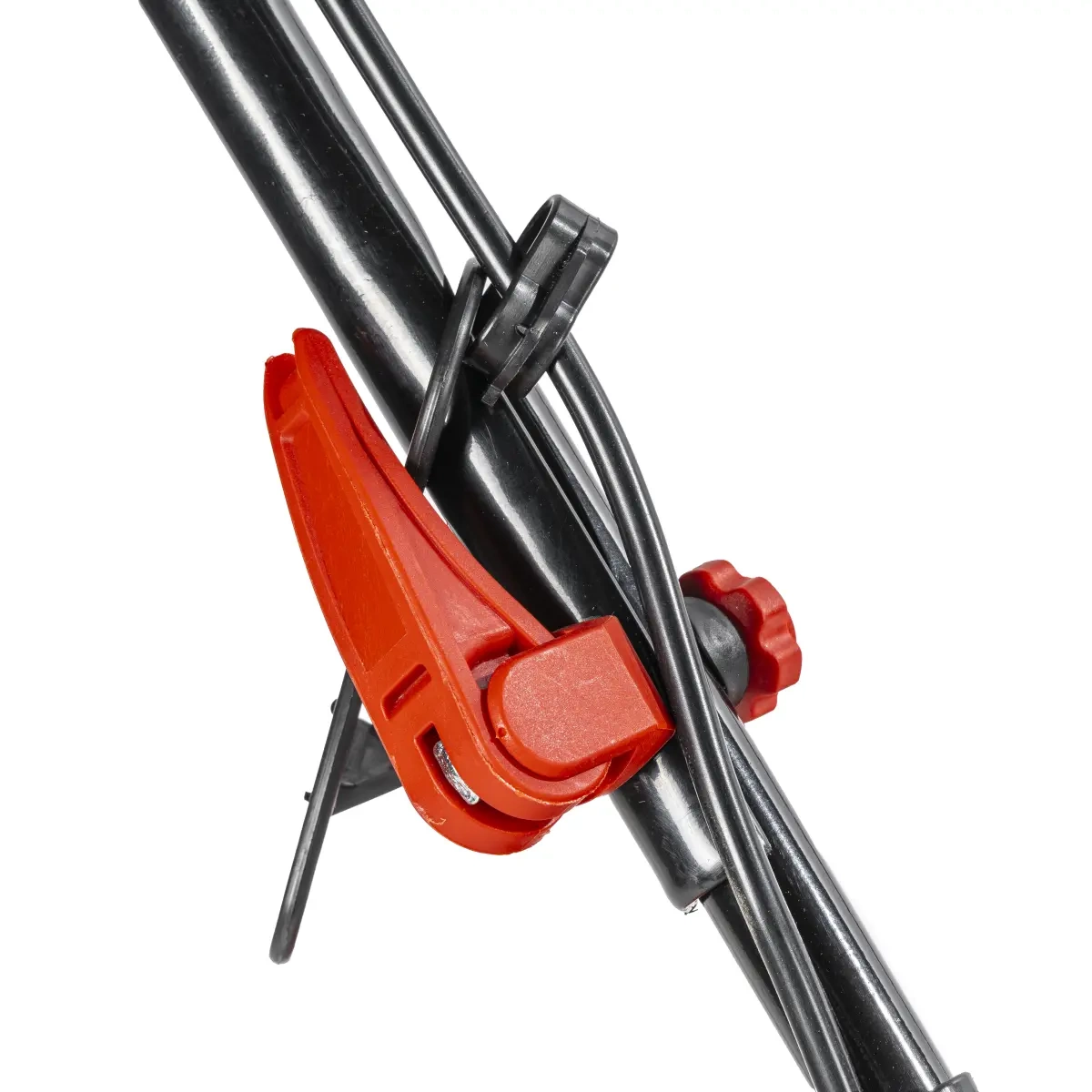 - Складная ручка – позволяет легко хранить косилку, экономя место для хранения