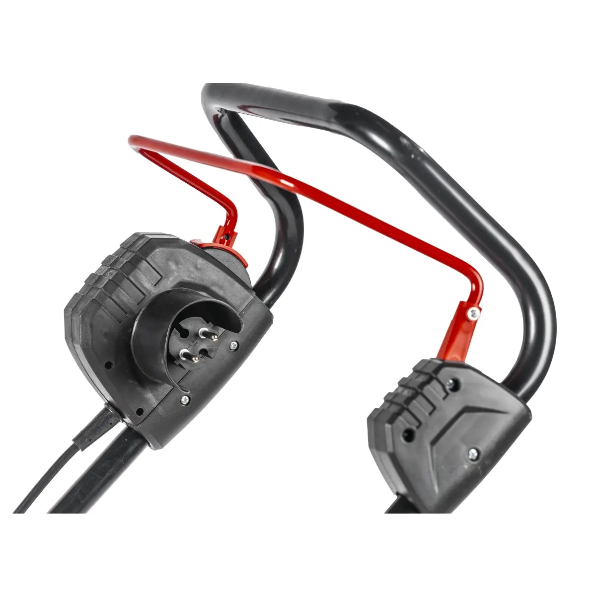 Устройство оснащено функциями, которые повышают удобство работы. Регулировка высоты ручки позволяет подстроить косилку под рост пользователя, что обеспечивает комфорт при длительном использовании. Кроме того, регулировка высоты скашивания в диапазоне от 30 до 60 мм позволяет точно настроить высоту травы в соответствии с индивидуальными предпочтениями, что помогает достичь запланированного результата.