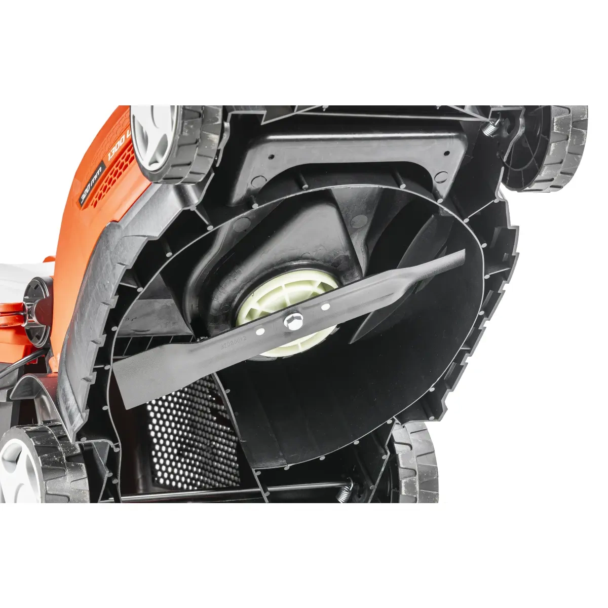 Косилка также сравнительно легкая, что делает ее легкой в управлении, даже в сложных условиях. Это позволяет использовать косилку более удобно и менее утомительно, особенно на неровных поверхностях или в садах с узкими дорожками, где более крупные и тяжелые устройства могут доставлять трудности.