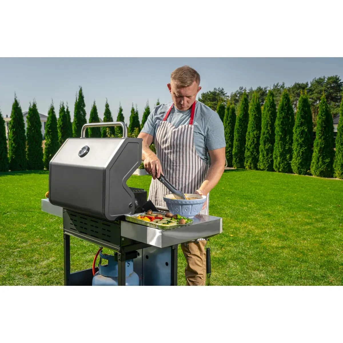 Он создан для людей, которые ценят удобство гриля и полный контроль над приготовлением блюд. Прочная конструкция обеспечивает устойчивость к механическим повреждениям и внешним факторам, что делает гриль идеально подходящим для интенсивного сезонного использования. Современный дизайн гармонирует как с приусадебными садами, так и с зонами отдыха или террасами.
