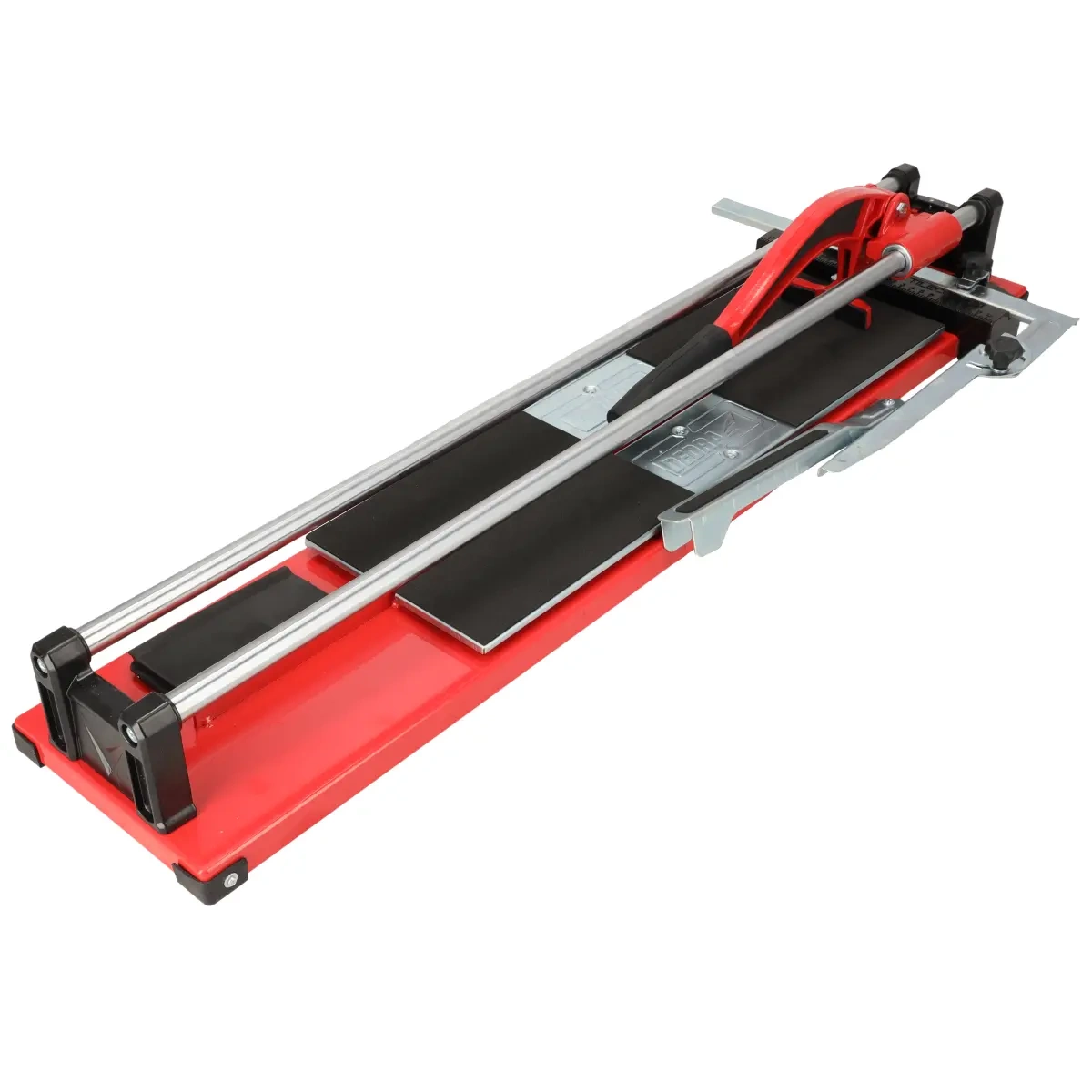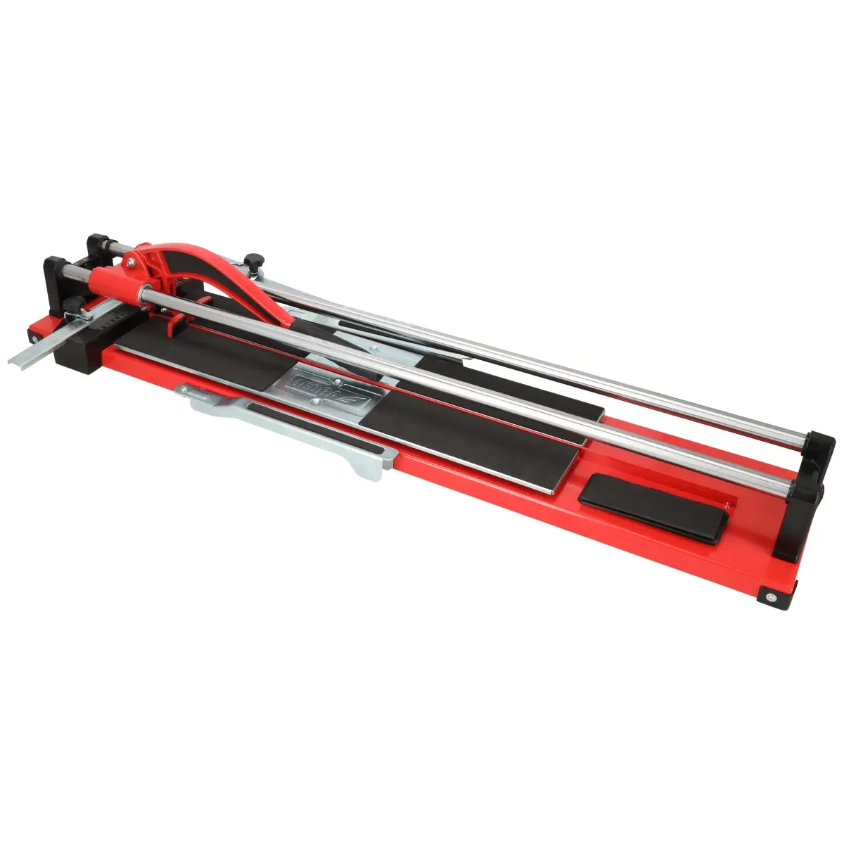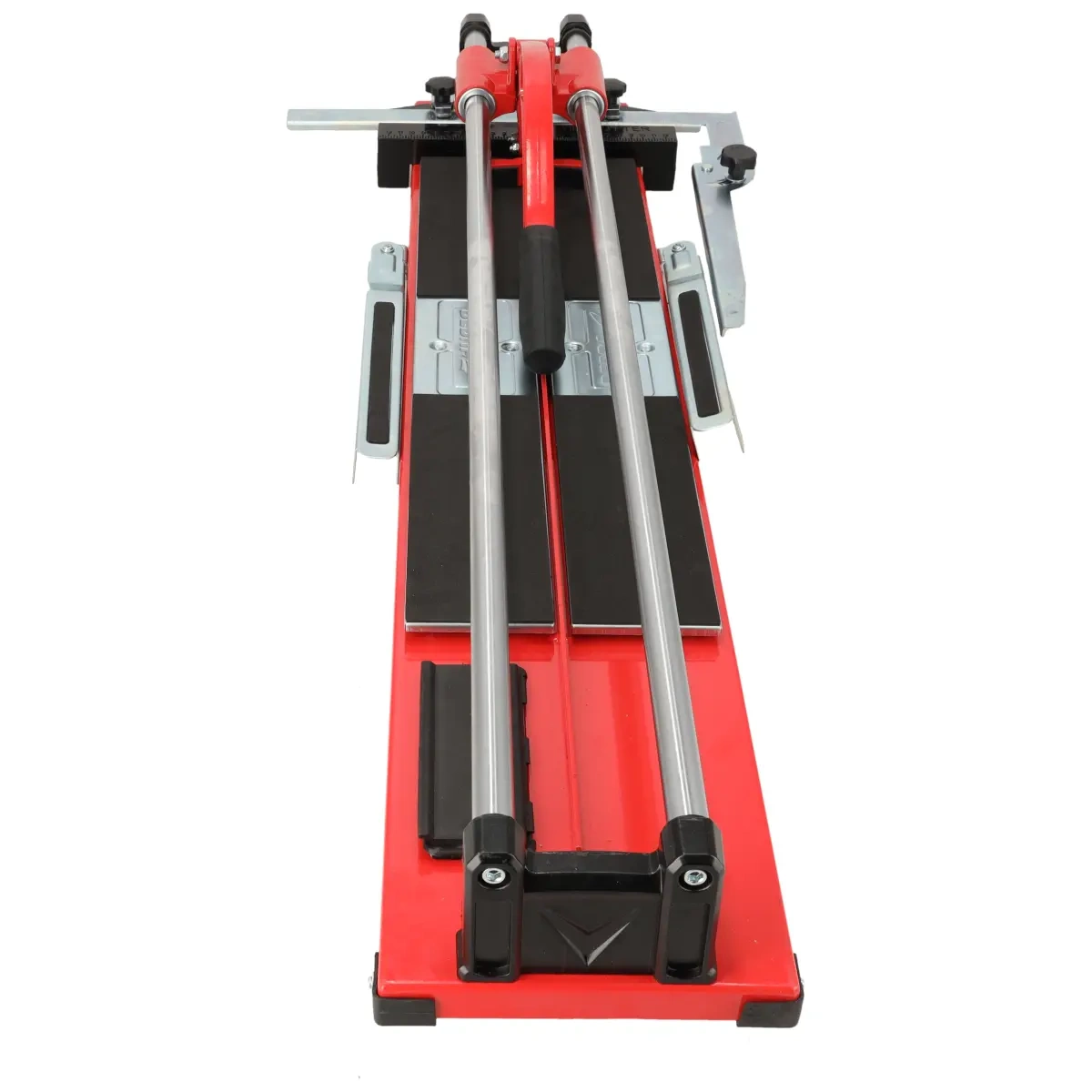 Ručni rezač pločica ima laserski pokazivač za rezanje. Laser projicira jasnu, jasno vidljivu crvenu liniju duž koje se pomiče rezni nož. Laserom izbjegavamo označavanje linija na površini izrezanih pločica. Rezač ima dvostruku kromiranu vodilicu. Kolica sa sustavom kugličnih ležajeva.